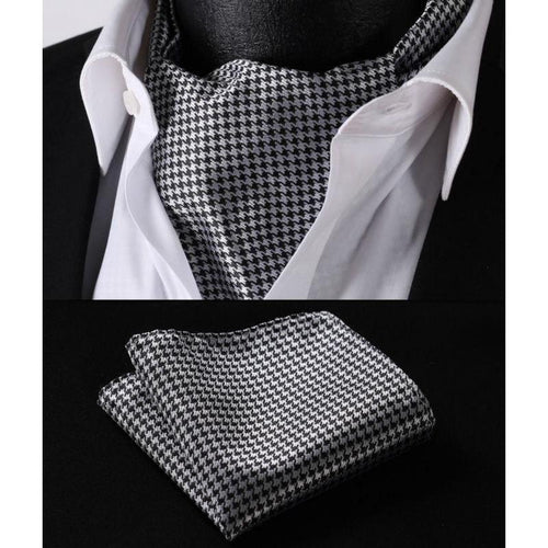 Dazzling Grey Silk Ascot/Cravat Tie & Handkerchief