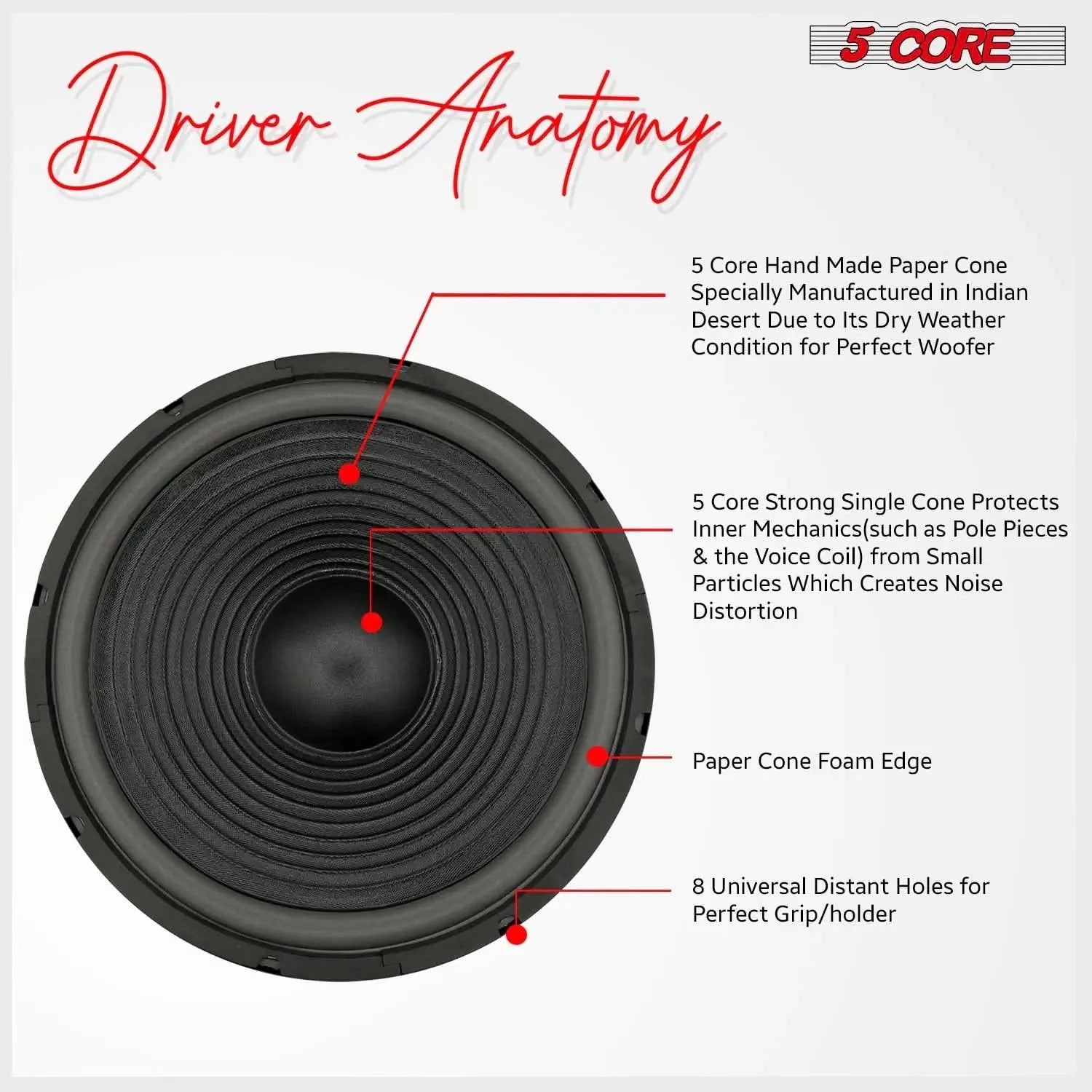 Transform your audio experience with the 5Core Max Bass 15 Inch Subwoofer 450W 4Ohm, engineered for unparalleled bass performance. This passive subwoofer is a game-changer, delivering an impressive 450W Max power and a steady 220W RMS, making it the ideal choice for anyone looking to enhance their vehicle’s sound system.