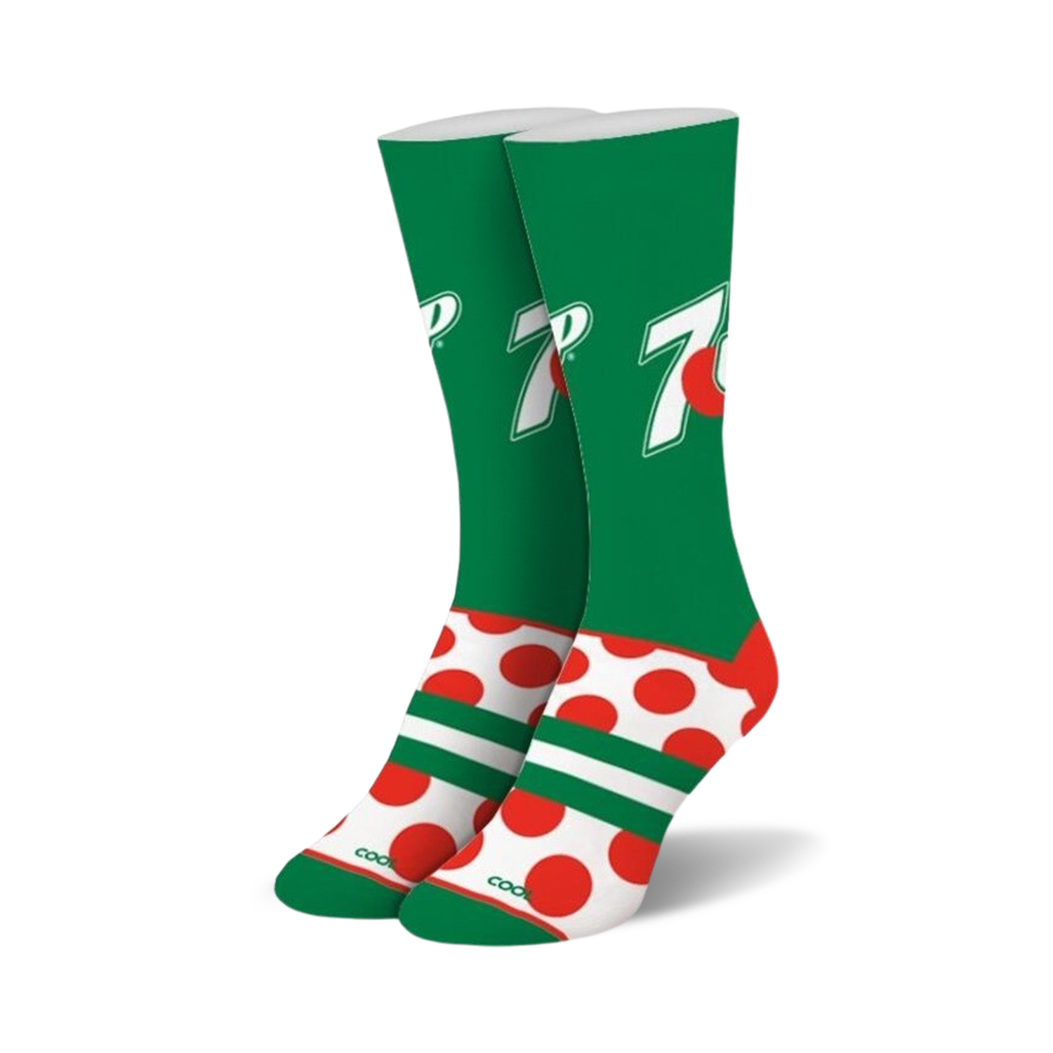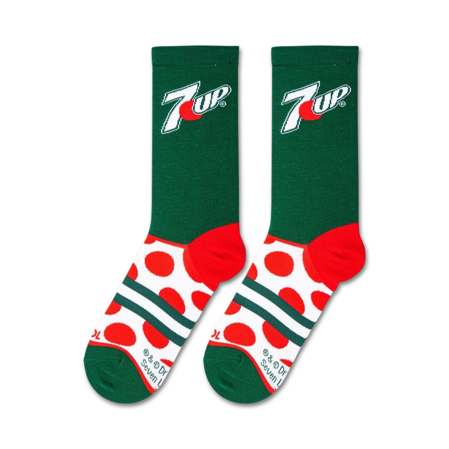 With a retro vibe inspired by 7UP, these red, white and green socks are a fun reference to the tasty citrus drink we all love, featuring an all-over polka dot design and prominent 7UP logo. Don't be surprised if these socks quench your thirst for style.