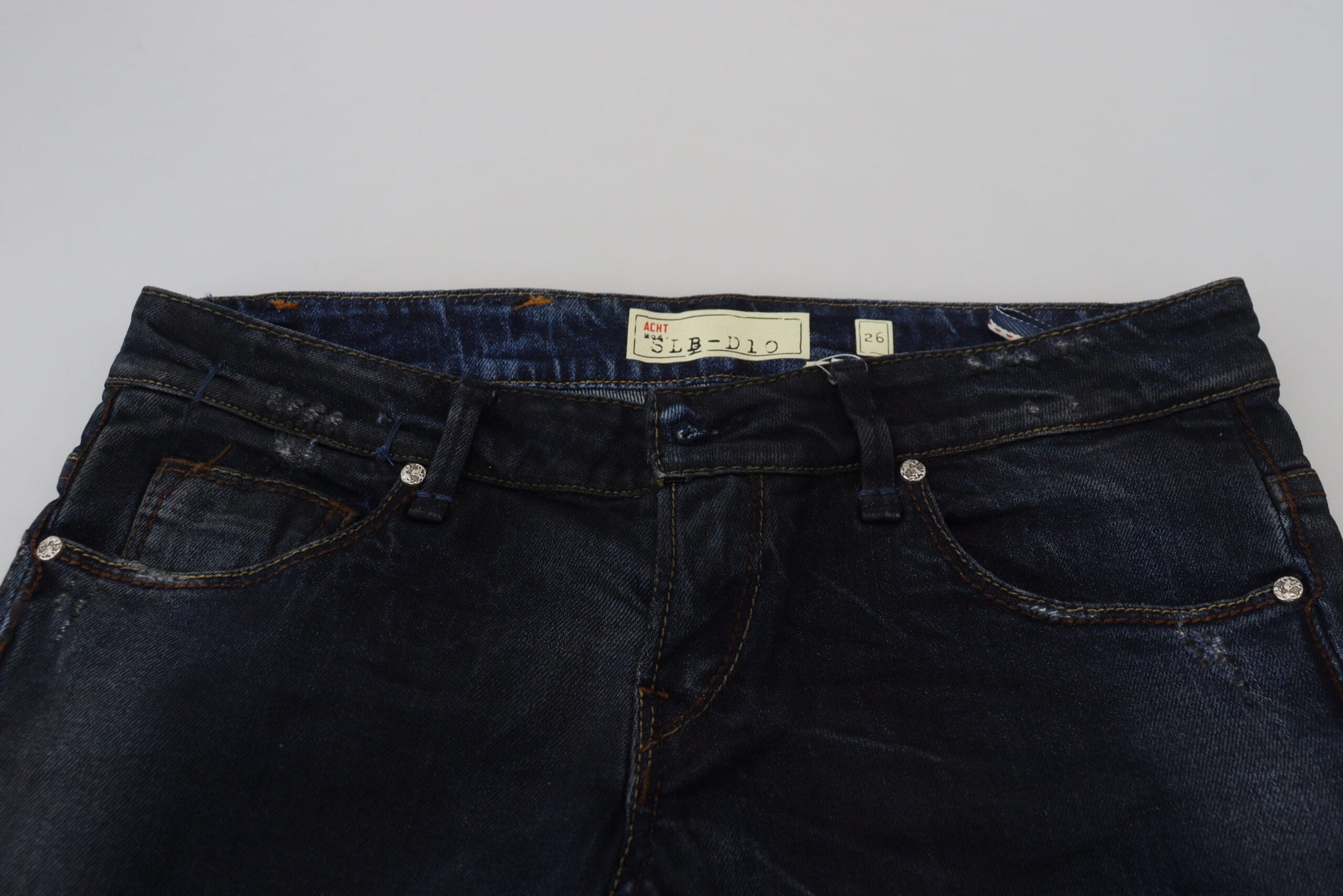 Gorgeous brand new with tags, 100% Authentic ACHT Jeans crafted from cotton features a slim fit cut with zipper and button closure. Color: Blue Model: Low Waist Slim Fit Denim Zipper closure Logo details Material: Cotton