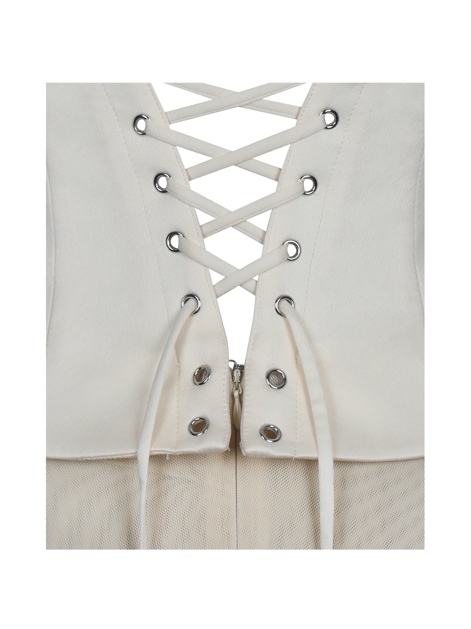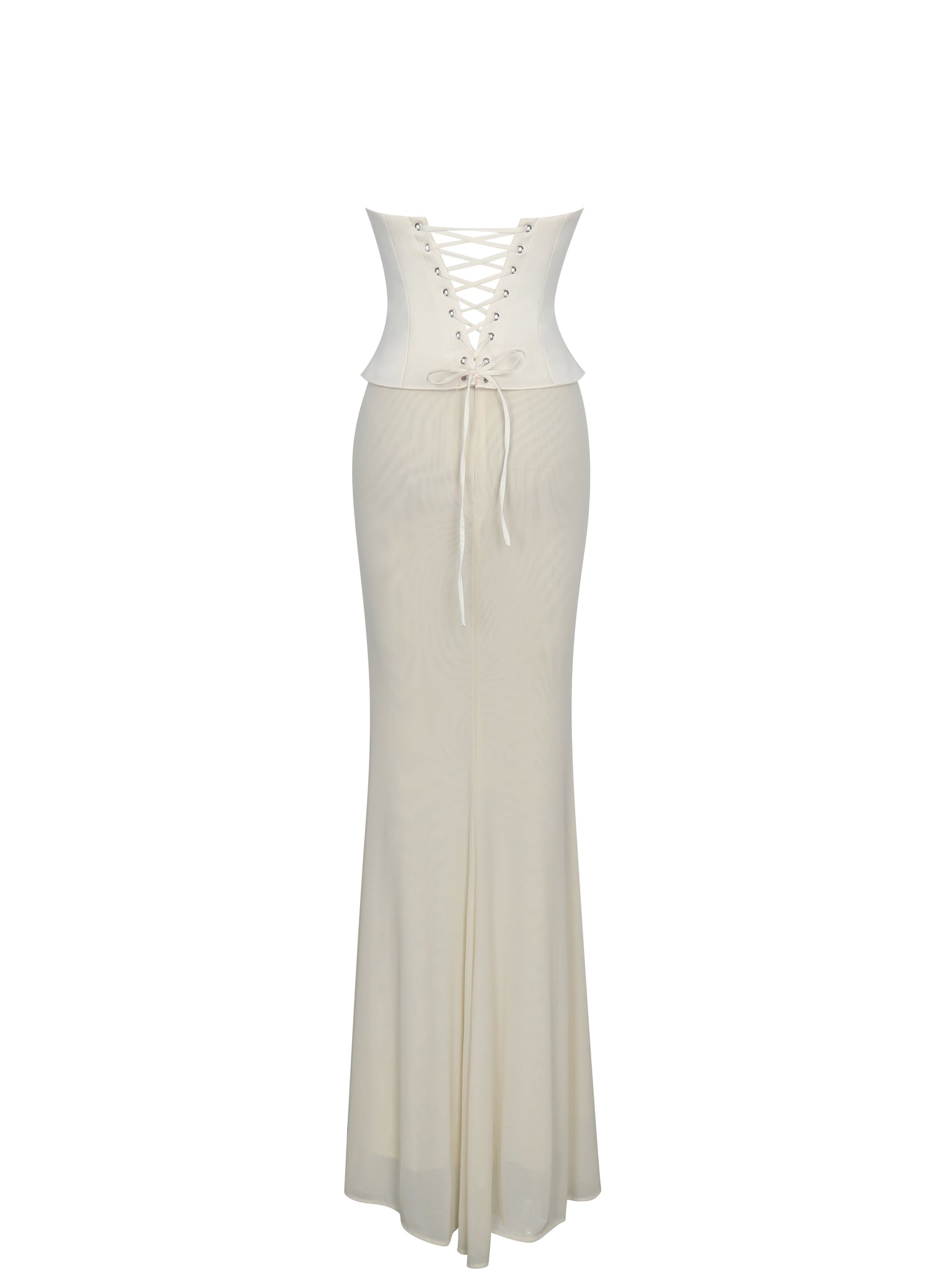 The Adelina Dress stuns in butter-yellow double duchess satin, featuring sculpted princess seams, a dipped waistline, and a peplum flare for a playful, flattering touch. With a built-in corset for structure and a non-slip grip at the bust, the fitted top keeps you supported and flawless, while an eyelet lace-up back allows for a customized fit like a true style pro. The lightweight mesh skirt, fully lined for modesty, hugs the hips before flaring into a soft mermaid silhouette that moves with breezy grace. Gracefully stunning, this dress is made to turn heads at formal nights, evening galas, and all those extra-special celebrations.
