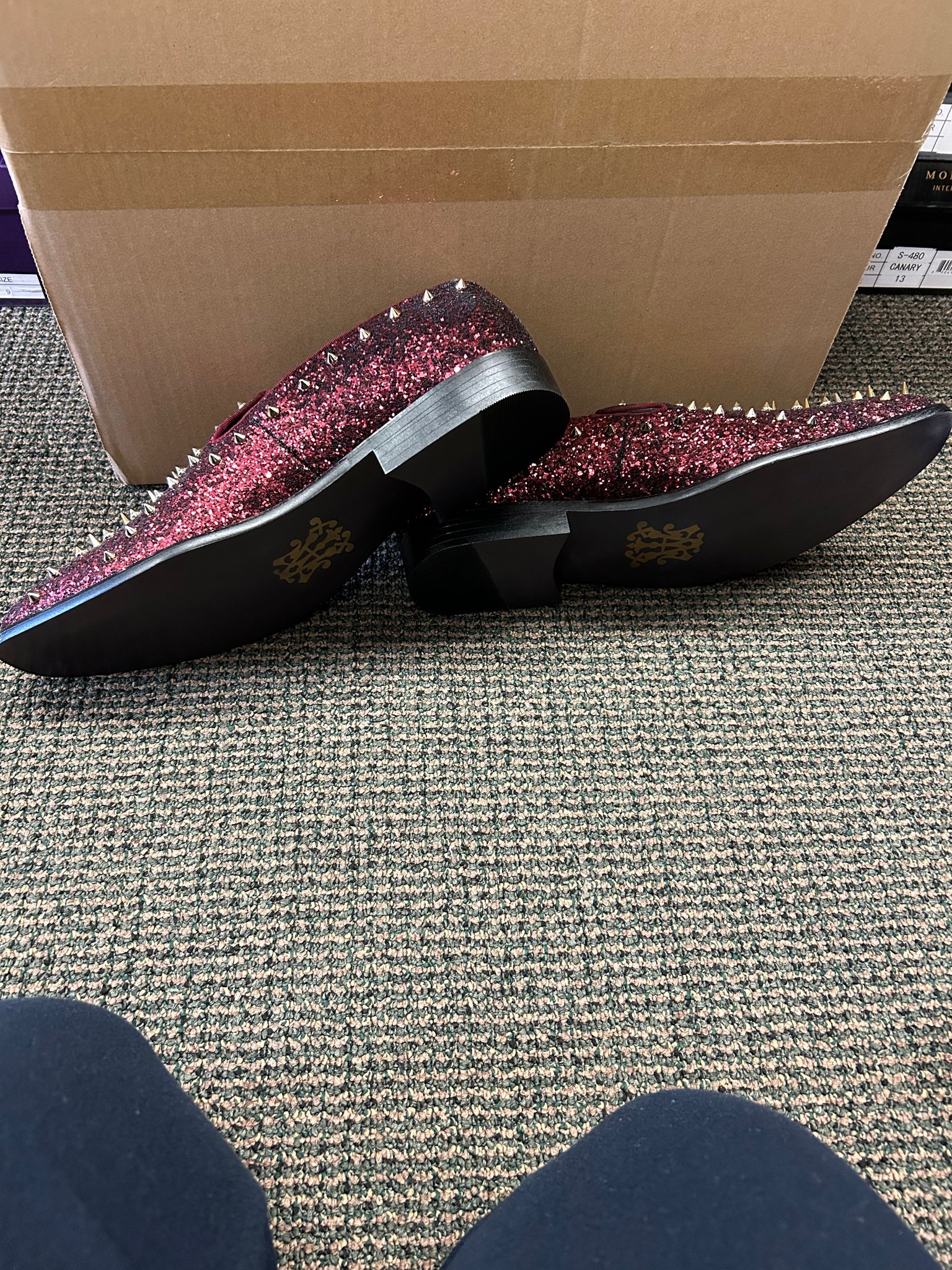 After Midnight Burgundy with Gold Spikes Men’s Smoking Dress Shoes