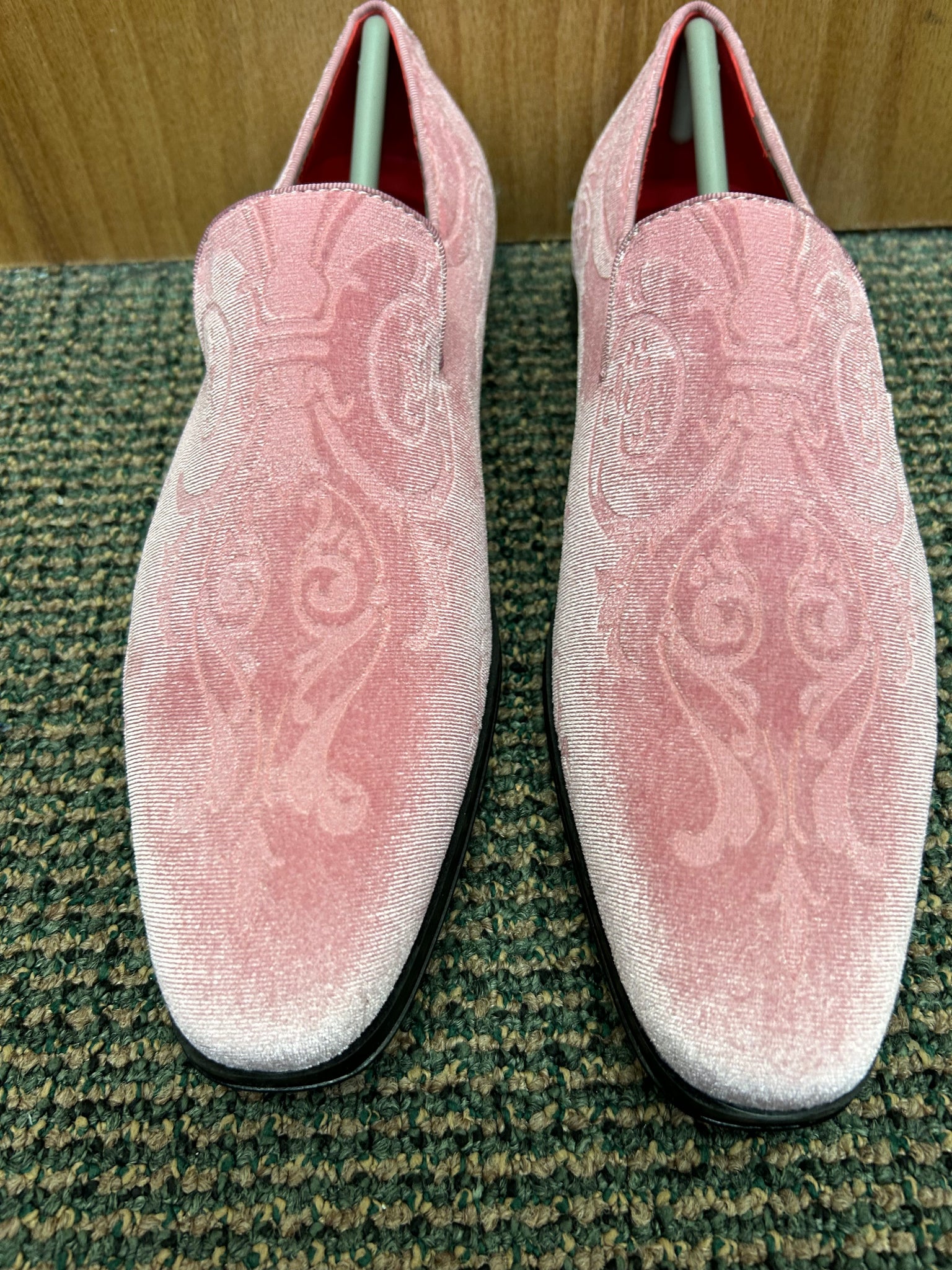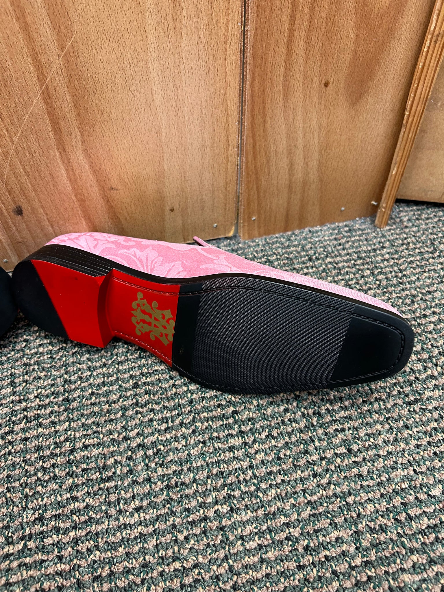 Stand out at any event with After Midnight's Pink Floral Suede-like Prom Dress Shoes. Featuring a unique engraved floral print and eye-catching red bottoms, these shoes are sure to make a statement. The soft suede-like material adds a touch of luxury and comfort to your outfit.