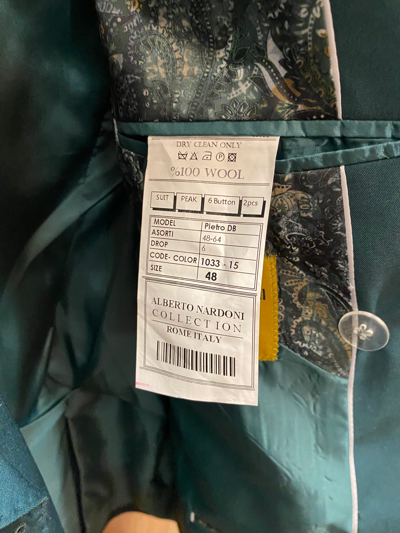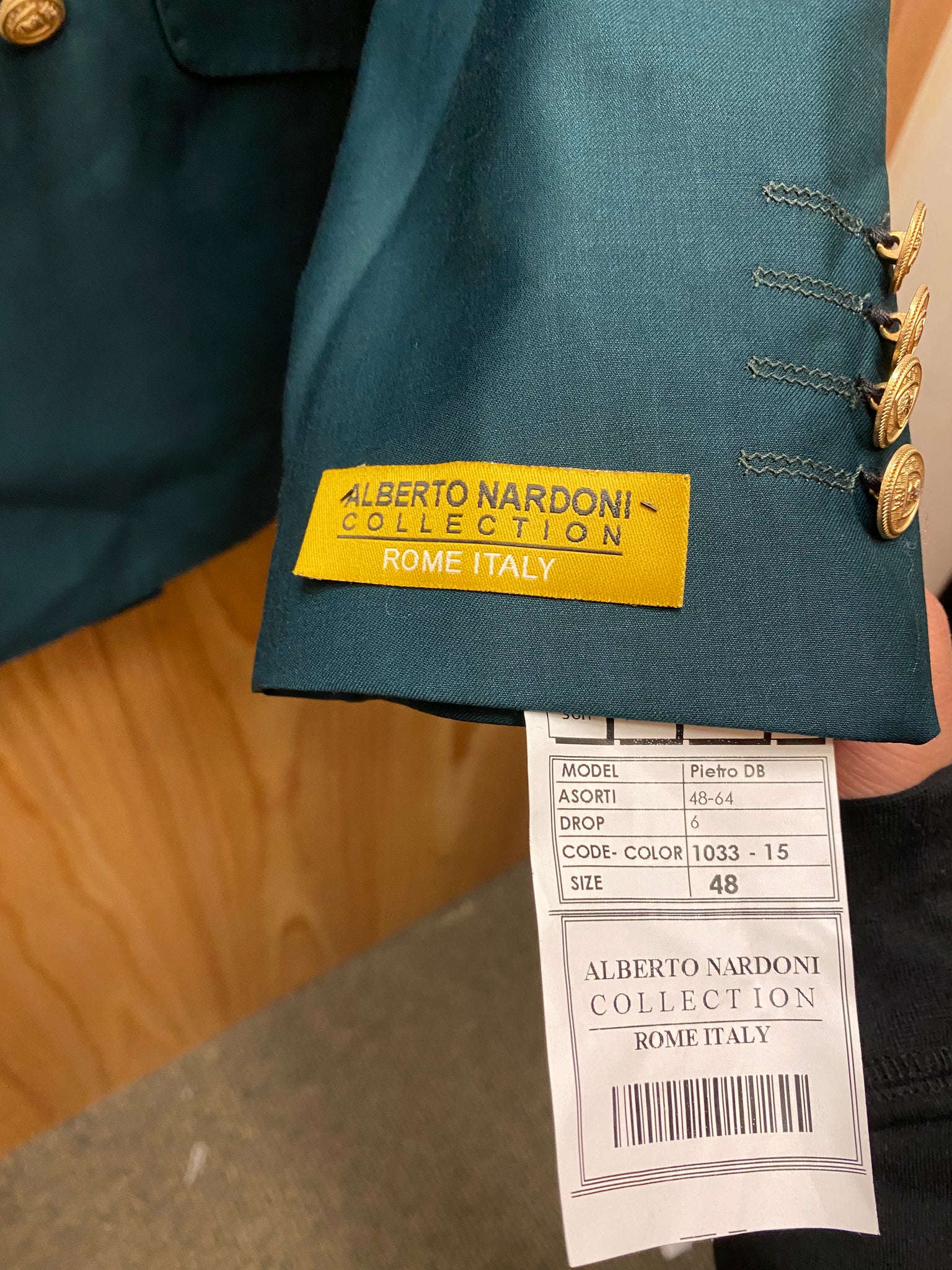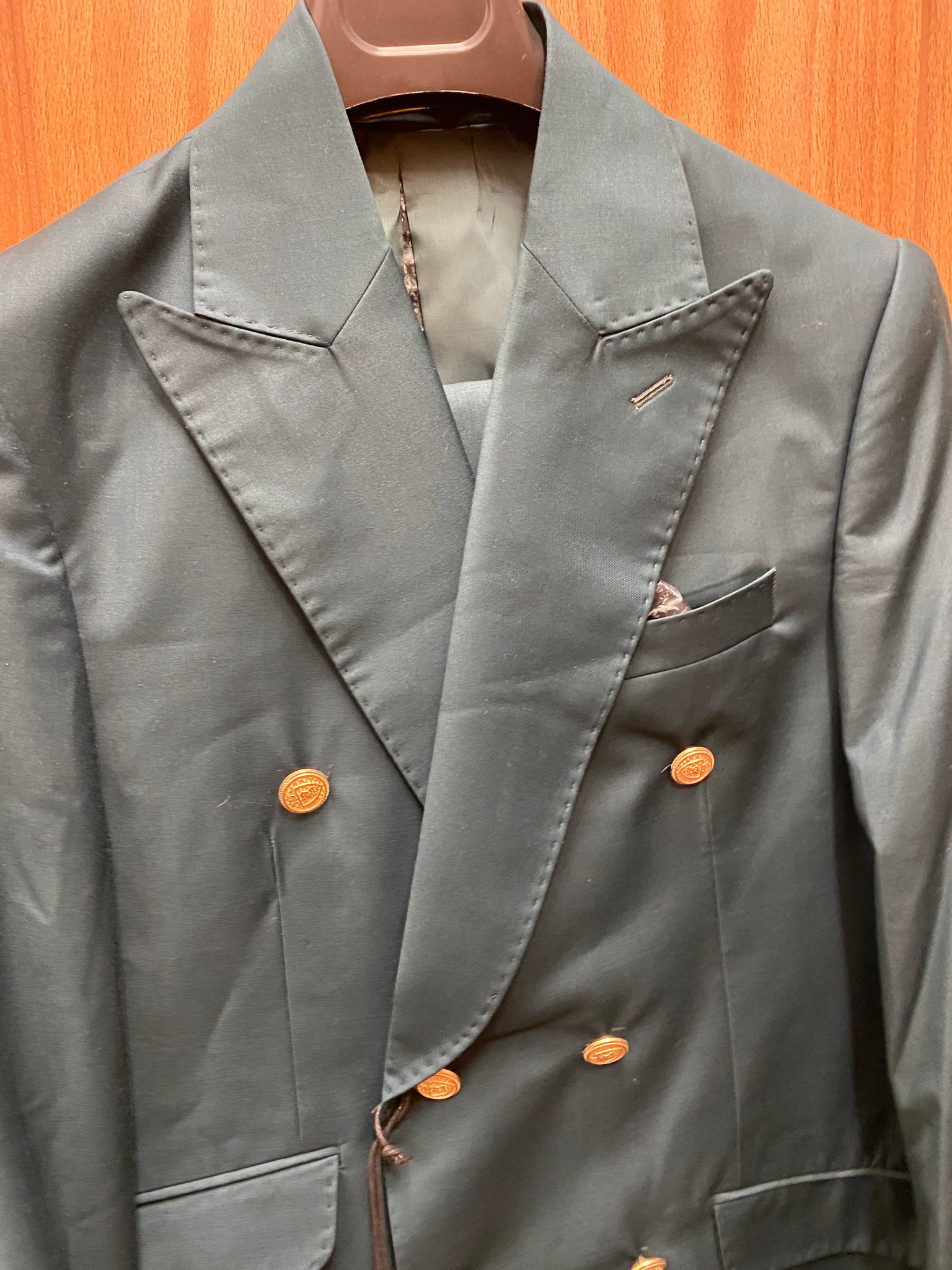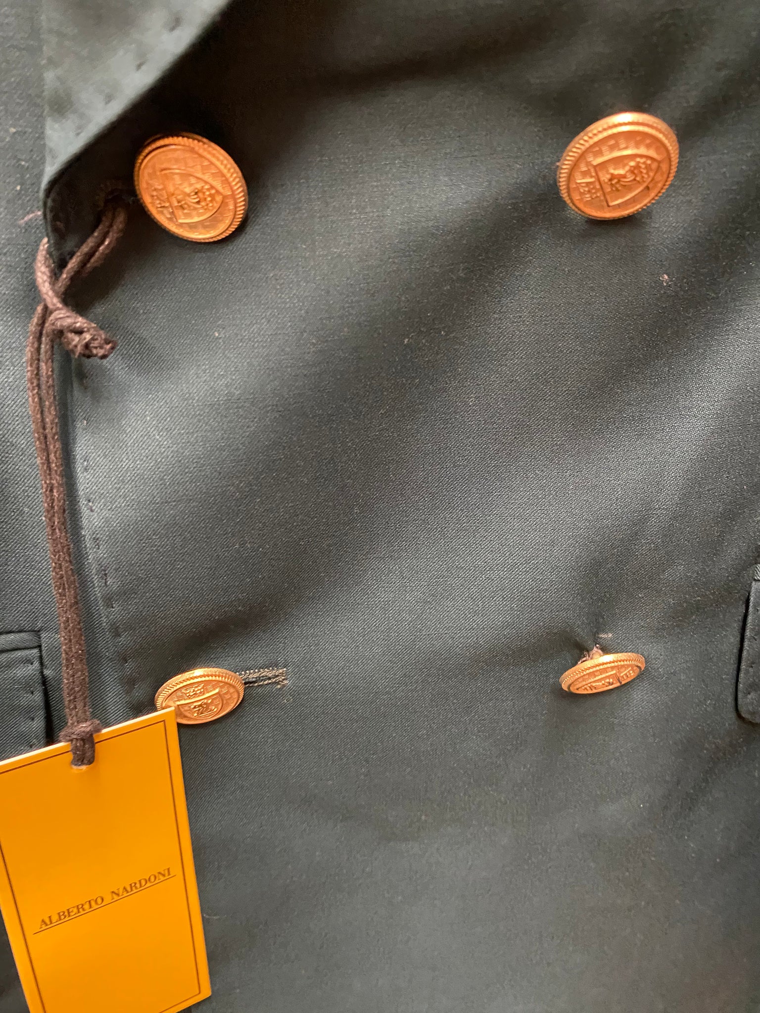 Alberto Nardoni brings you a wool double breasted suit with an European twist. Gold buttons help to highlight and accent this suit to give it a more distinguished and rich look.