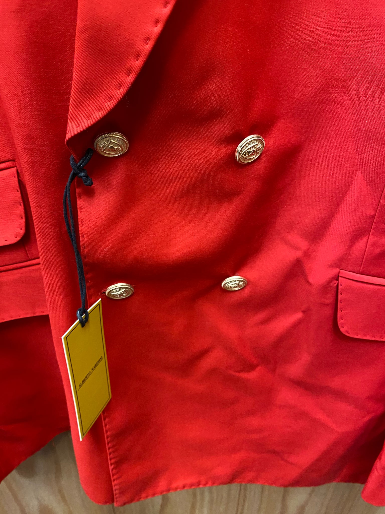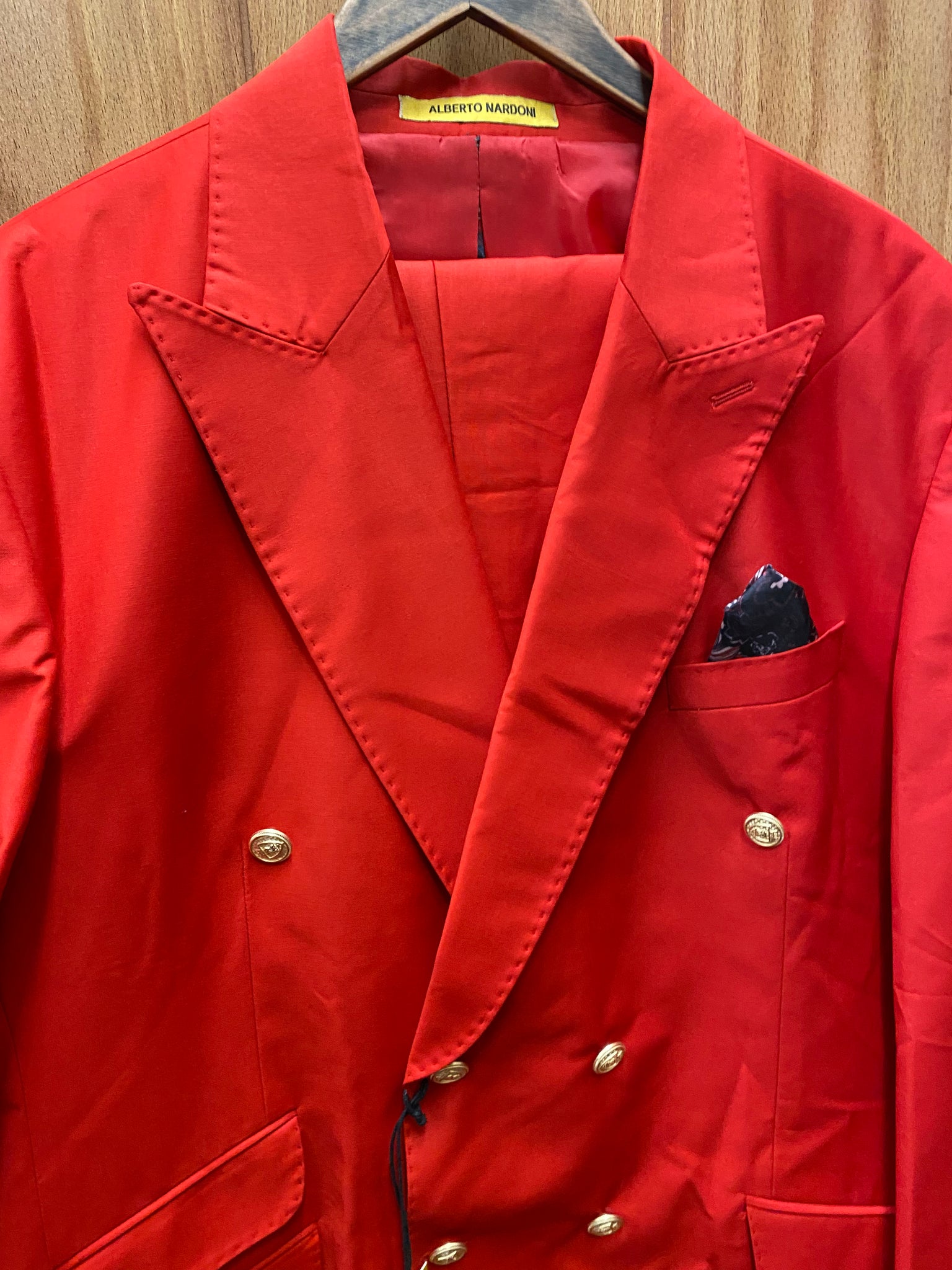 Alberto Nardoni brings you a wool double breasted suit with an European twist. Gold buttons help to highlight and accent this suit to give it a more distinguished and rich look.