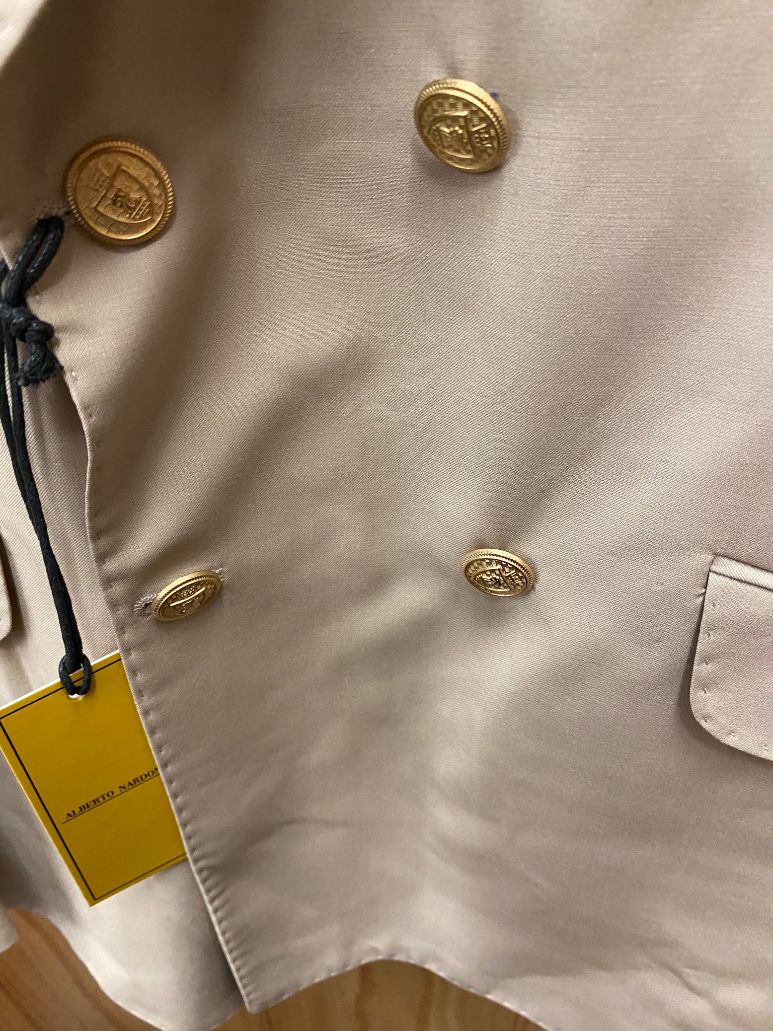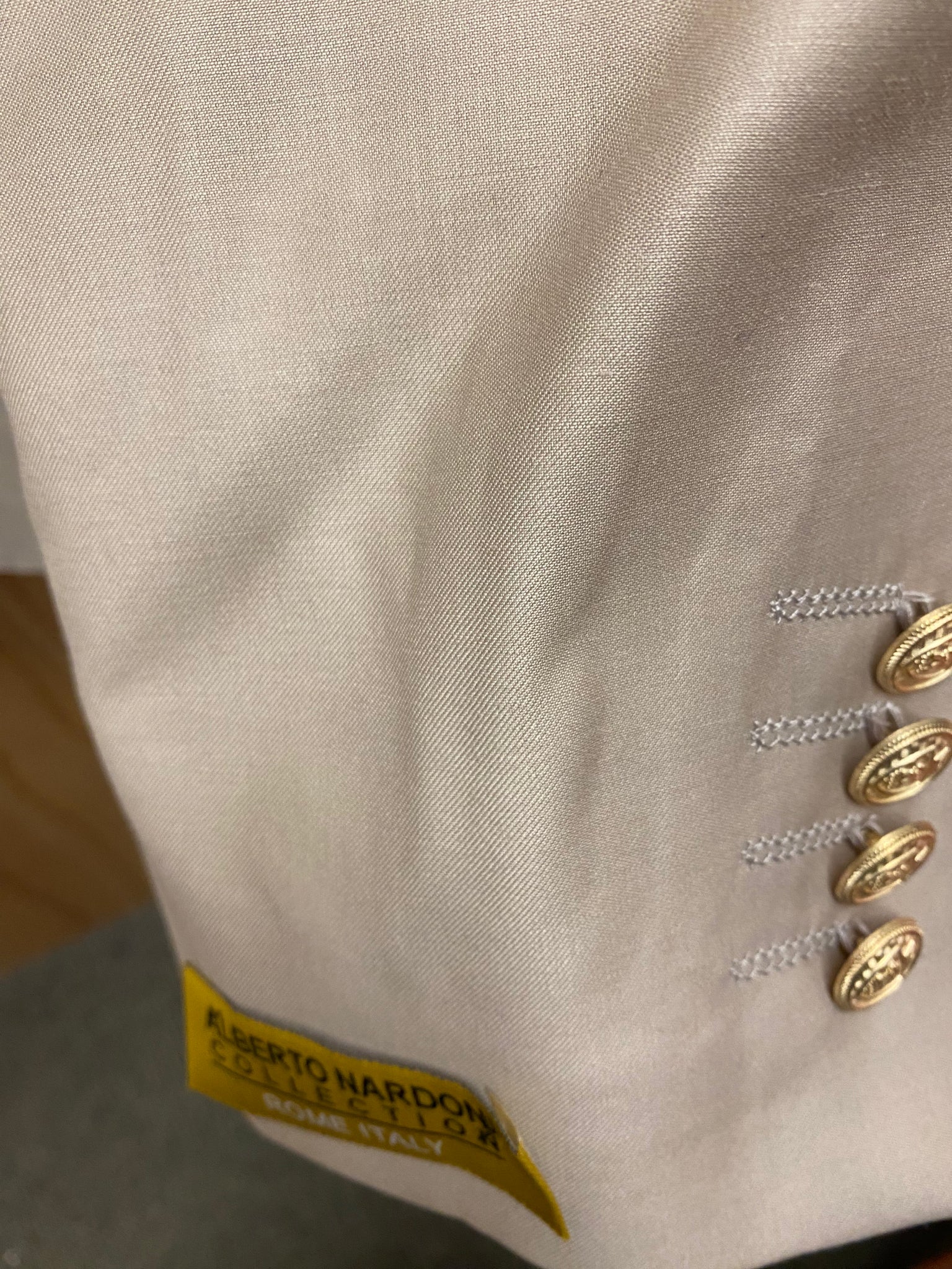 Alberto Nardoni brings you a wool double breasted suit with an European twist. Gold buttons help to highlight and accent this suit to give it a more distinguished and rich look.