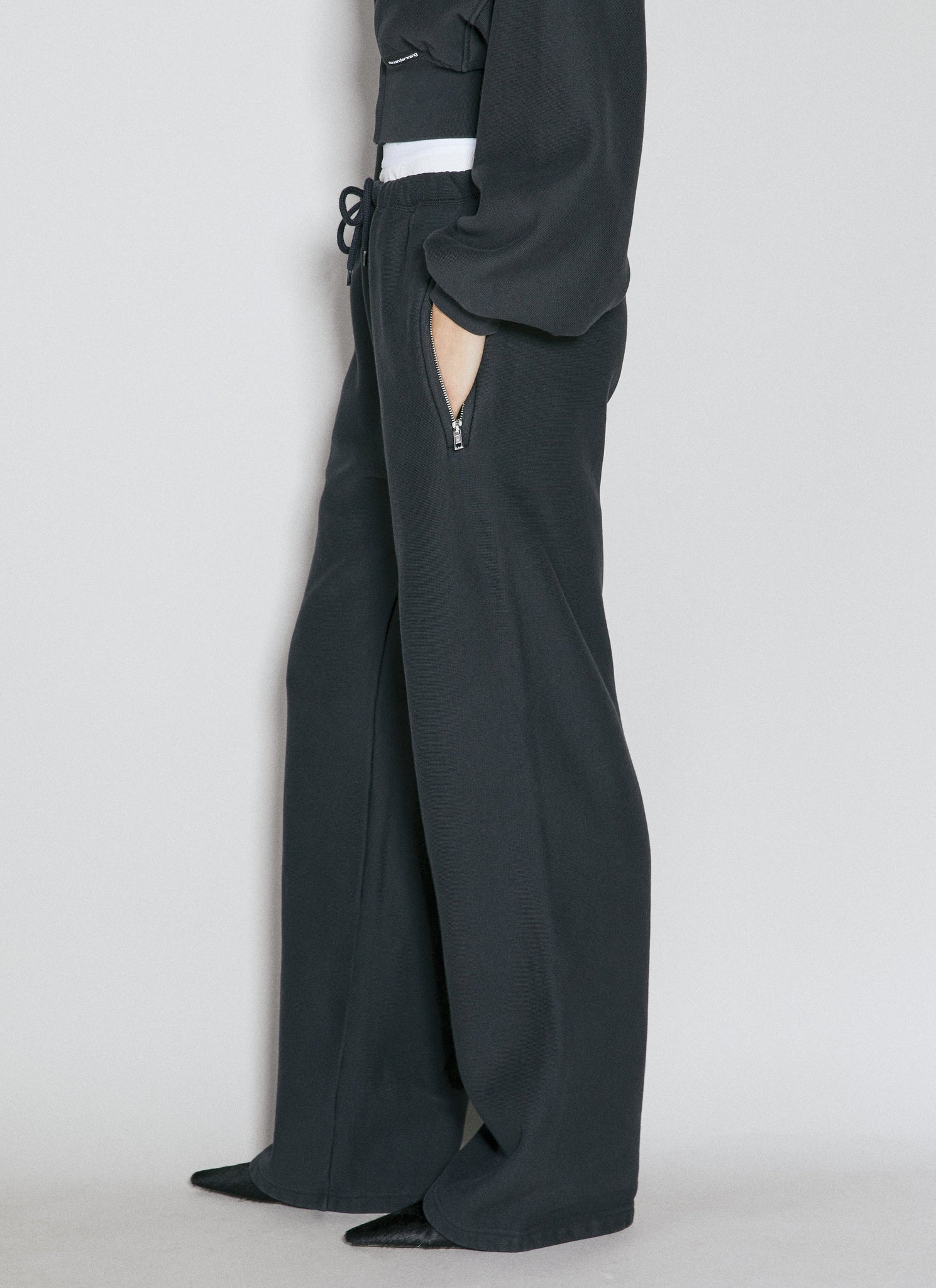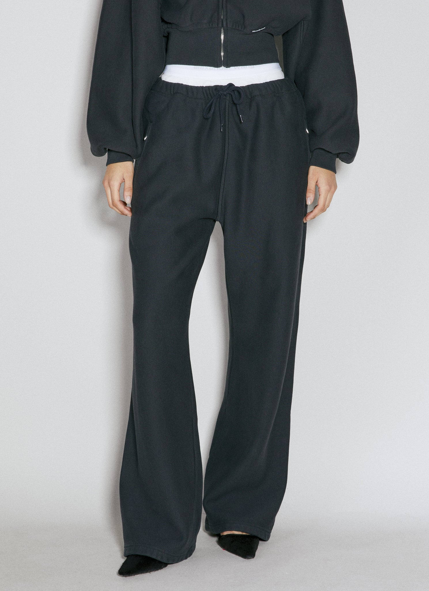 Wide-leg track pants in cotton fleece with extended brief waistband.