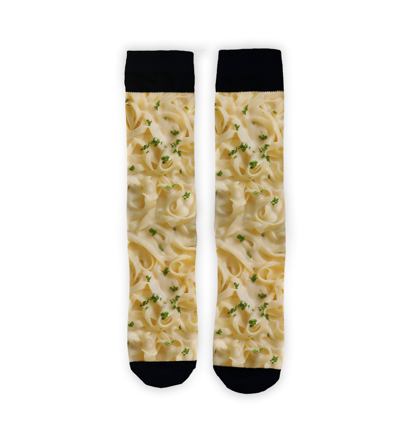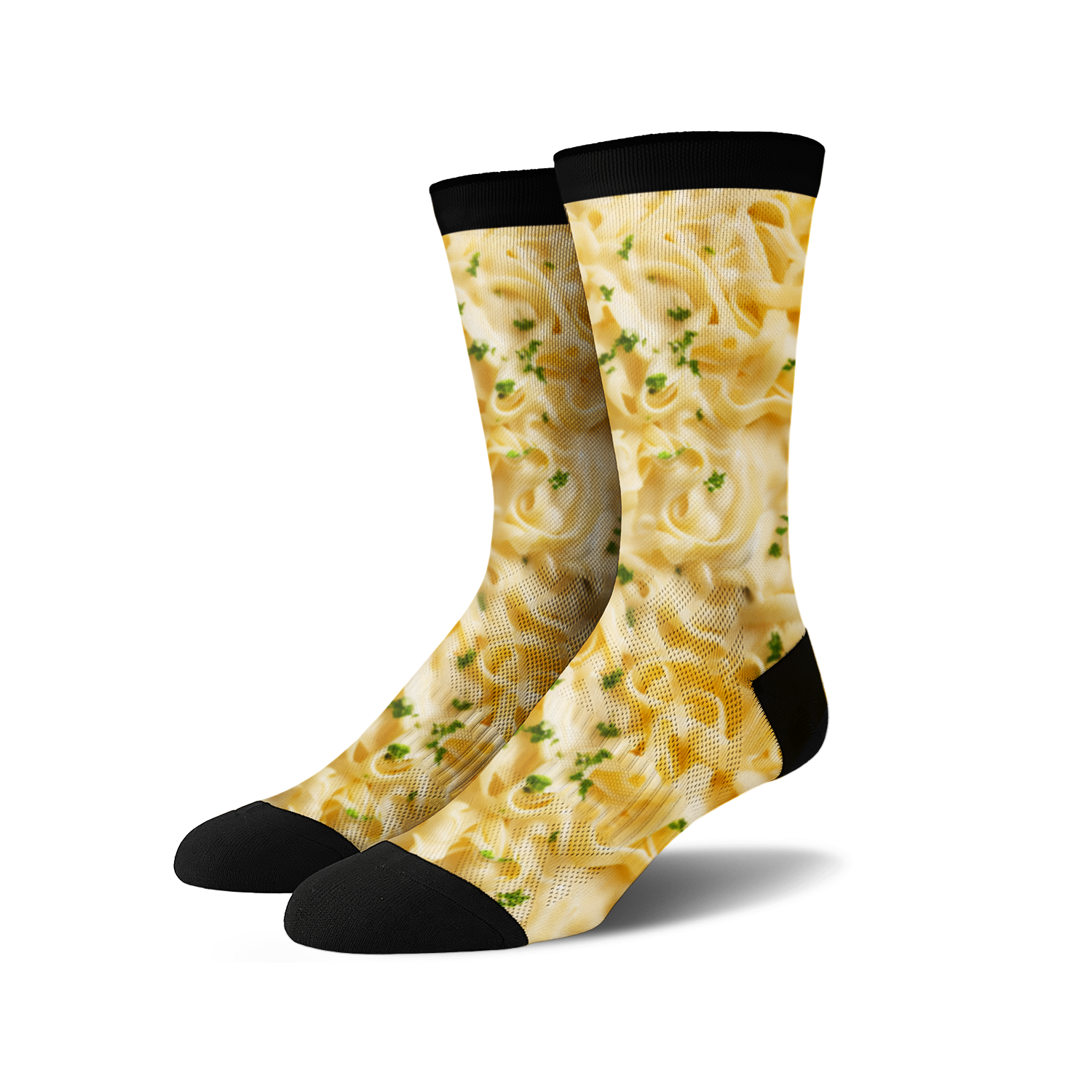 Slide into a bowl of cozy comfort with our Alfredo Pasta 360 socks! They'll have you shouting "Fettuccine-ally awesome!" Decked out with a cheesy Alfredo sauce pattern, twirls of fettuccine, and a sprinkle of parsley, these socks are a pasta lover's dream. Perfect for chefs, carb connoisseurs, or anyone who digs pasta. So next time you're hankering for a hearty meal but can't hit the kitchen, slip on these socks and bask in the warmth of your footsy food hug. You'll feel like you're snuggled up in a delicious bowl of Alfredo pasta!