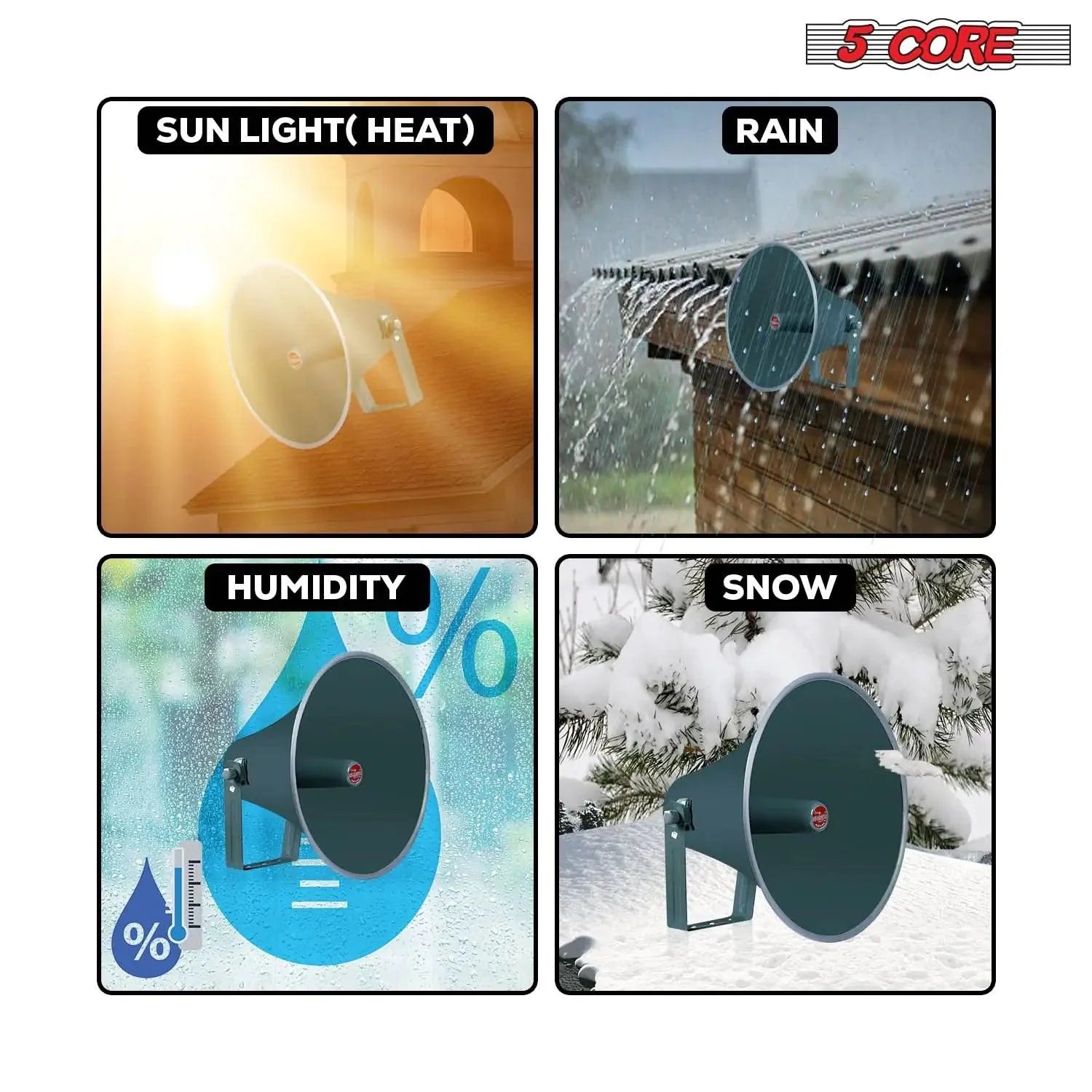 Experience unparalleled audio performance with the All-Weather 16-inch PA Speaker Horn from 5 Core. Engineered to withstand the elements, this premium horn throat guarantees consistent sound projection across various environments, whether indoors or outdoors. Its heavy-duty construction ensures longevity and reliability, making it the ideal choice for all your audio needs.