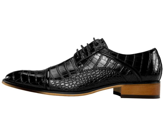 Amali Eberly Black Croc Print Oxford Men's Lace Up Dress Shoes | Woodgrain sole