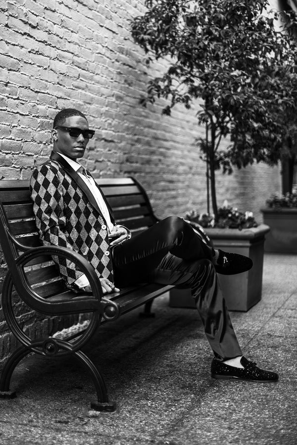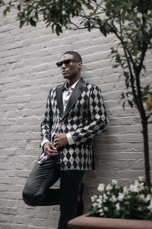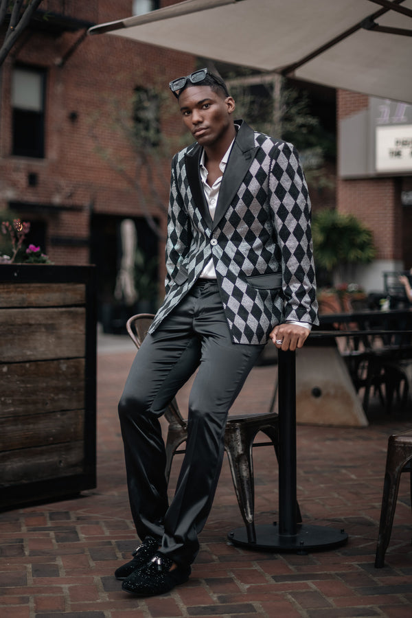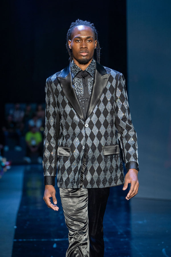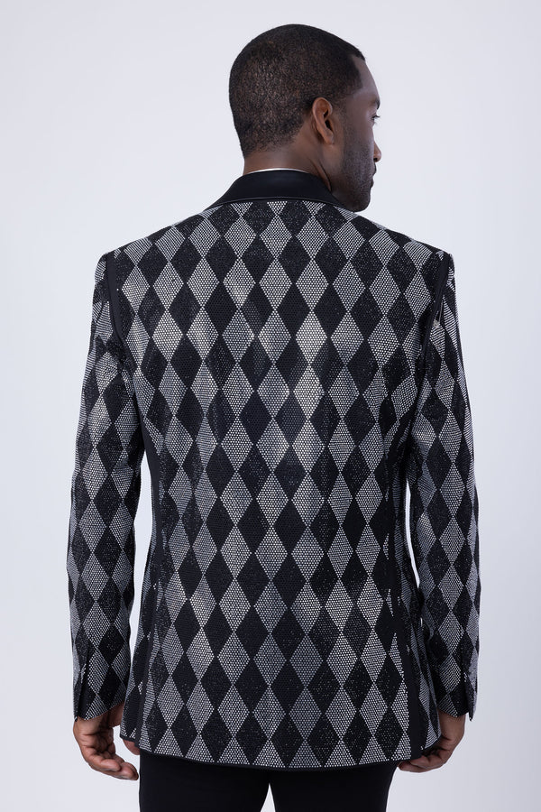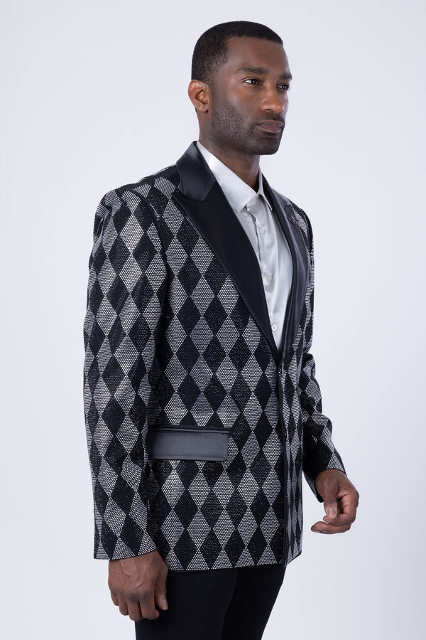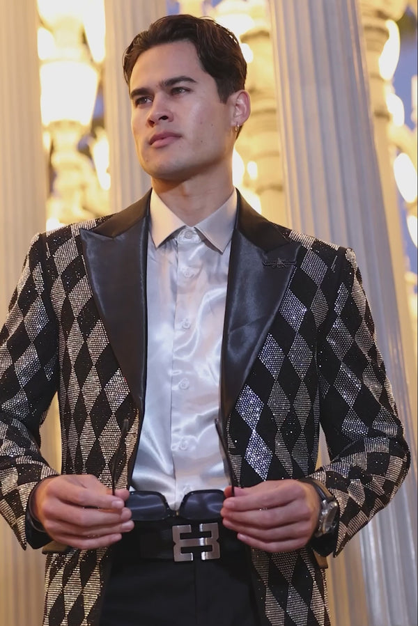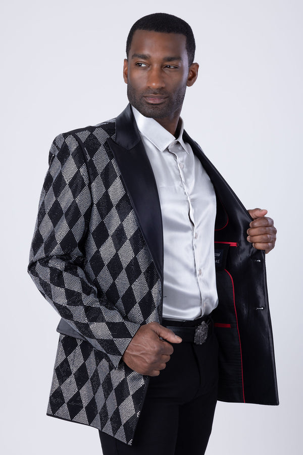 Featuring a stunning diamond design and intricate rhinestone design, the Barabas luxury men's blazer is expertly crafted with textured polyester fabric and a modern slim-fit style. Its elaborate architecture and high-quality lining make it a standout choice for parties, proms, and other special occasions.