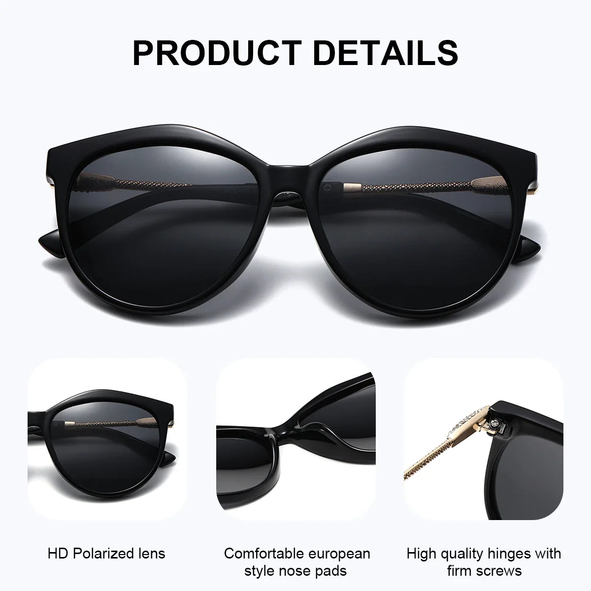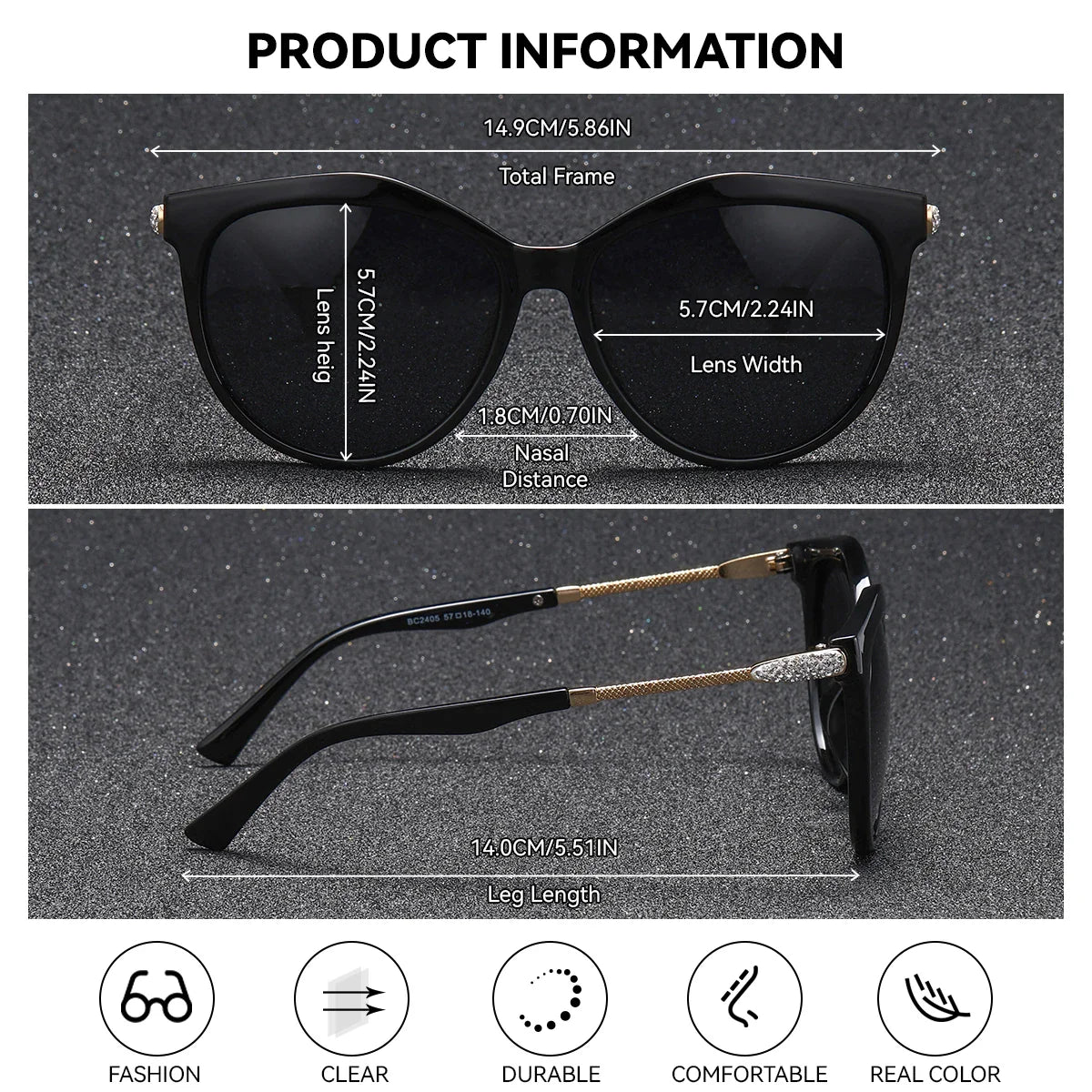 - FASHIONABLE CAT EYE ROUND FRAME FOR TRENDY LOOKS: Combining retro charm with modern elegance, these sunglasses feature a bold cat eye silhouette blended with a perfectly balanced round lens design. The ultra-lightweight polycarbonate frame ensures maximum comfort for long wear, while delivering a fashionable flair ideal for stylish women on the go.