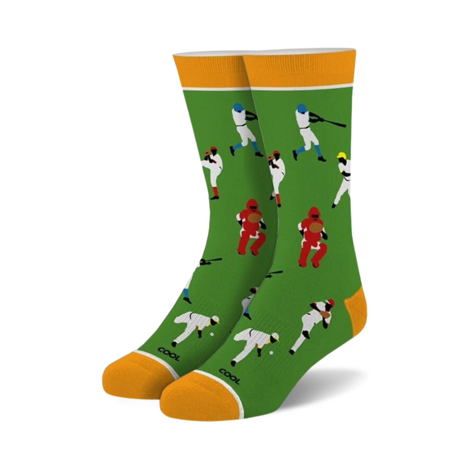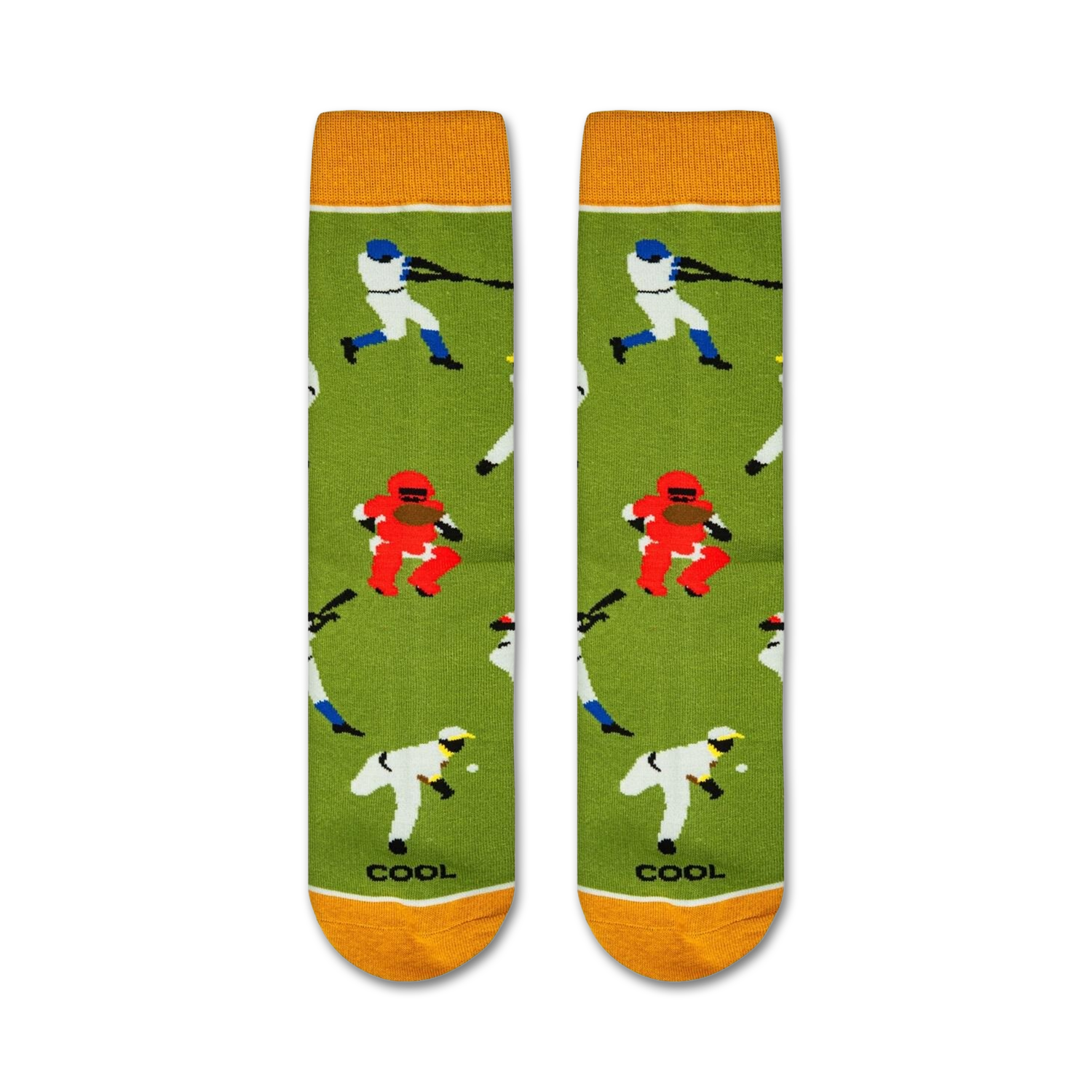 Step up to the plate with these Baseball Crew socks! You'll feel like a pro, even if you're just lounging on the couch. With their lively pattern of baseball players in action, these socks are a grand slam! They're a homerun for both men and women, so you can share the love of the game. Fun fact: The first baseball game was played in Hoboken, New Jersey in 1846. Did you know that? Well now you do, and these socks will help you remember it with every stride.