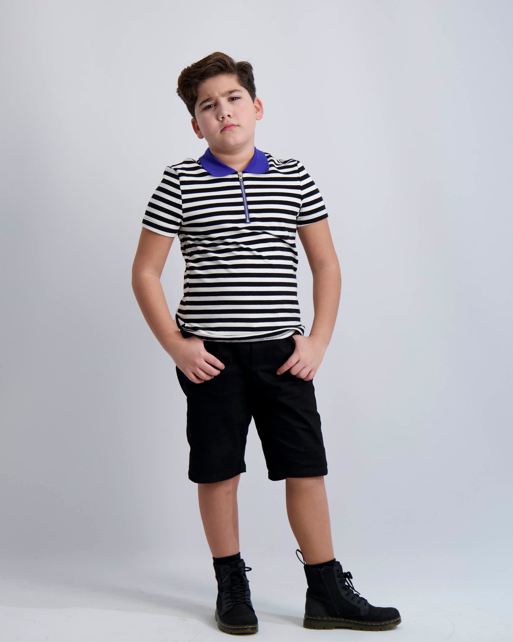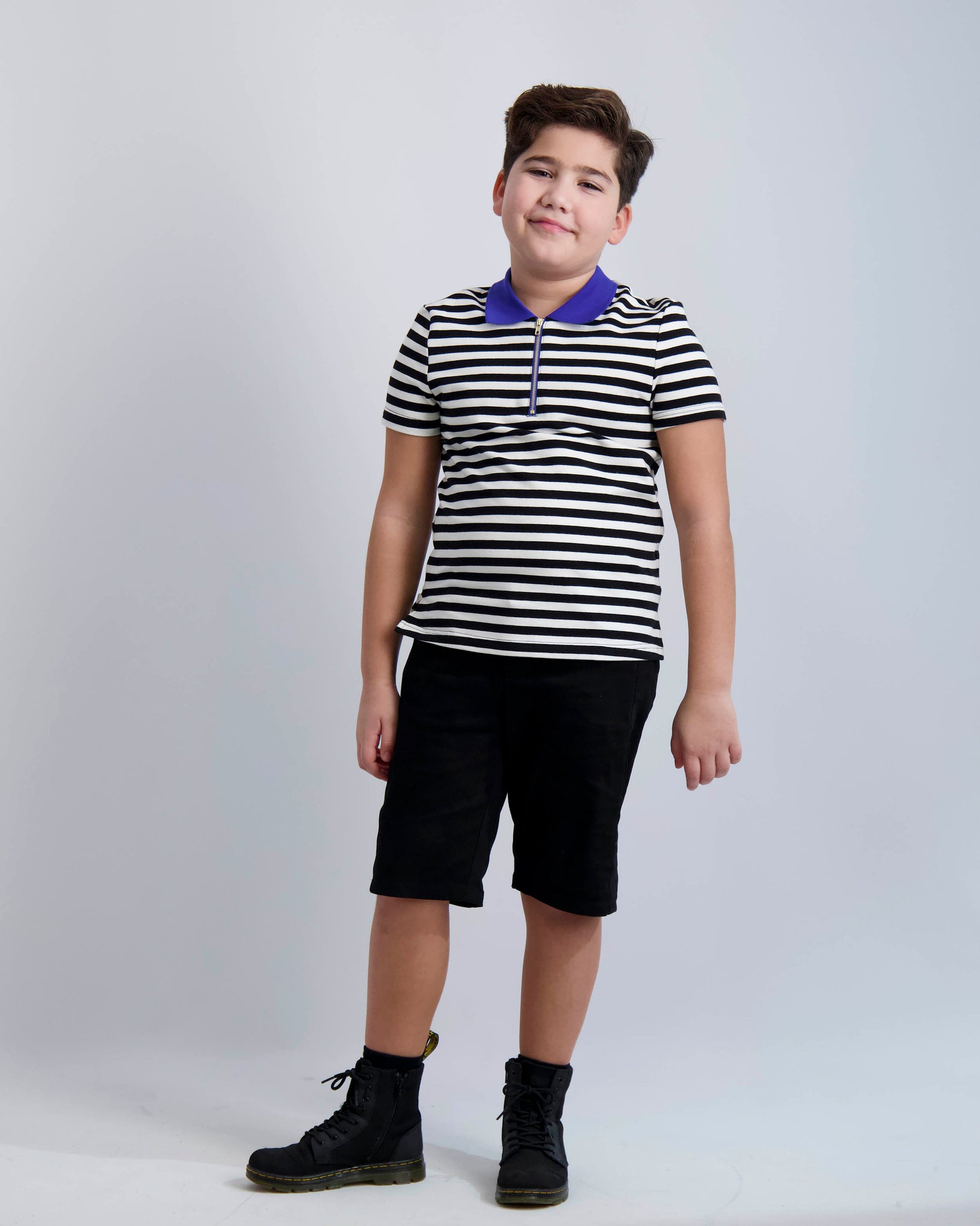 A polo shirt in soft cotton with black and white stripes and styled with a zip placket and a contrasting collar. Pairs well with our everyday shorts or your favorite pair of jeans.