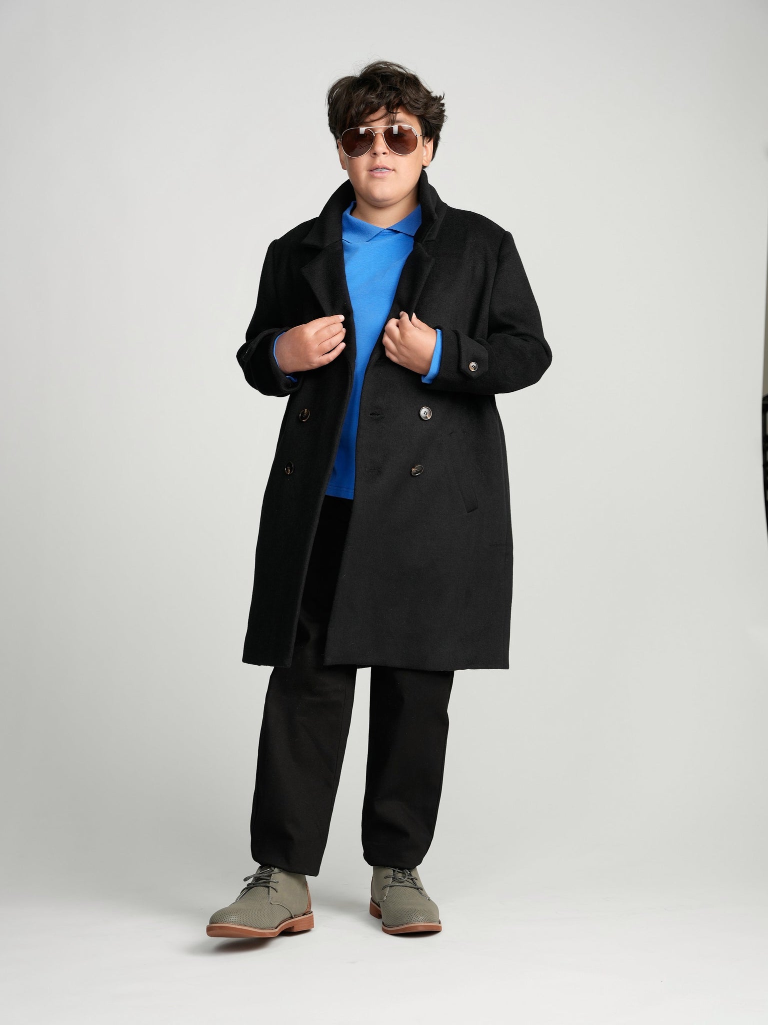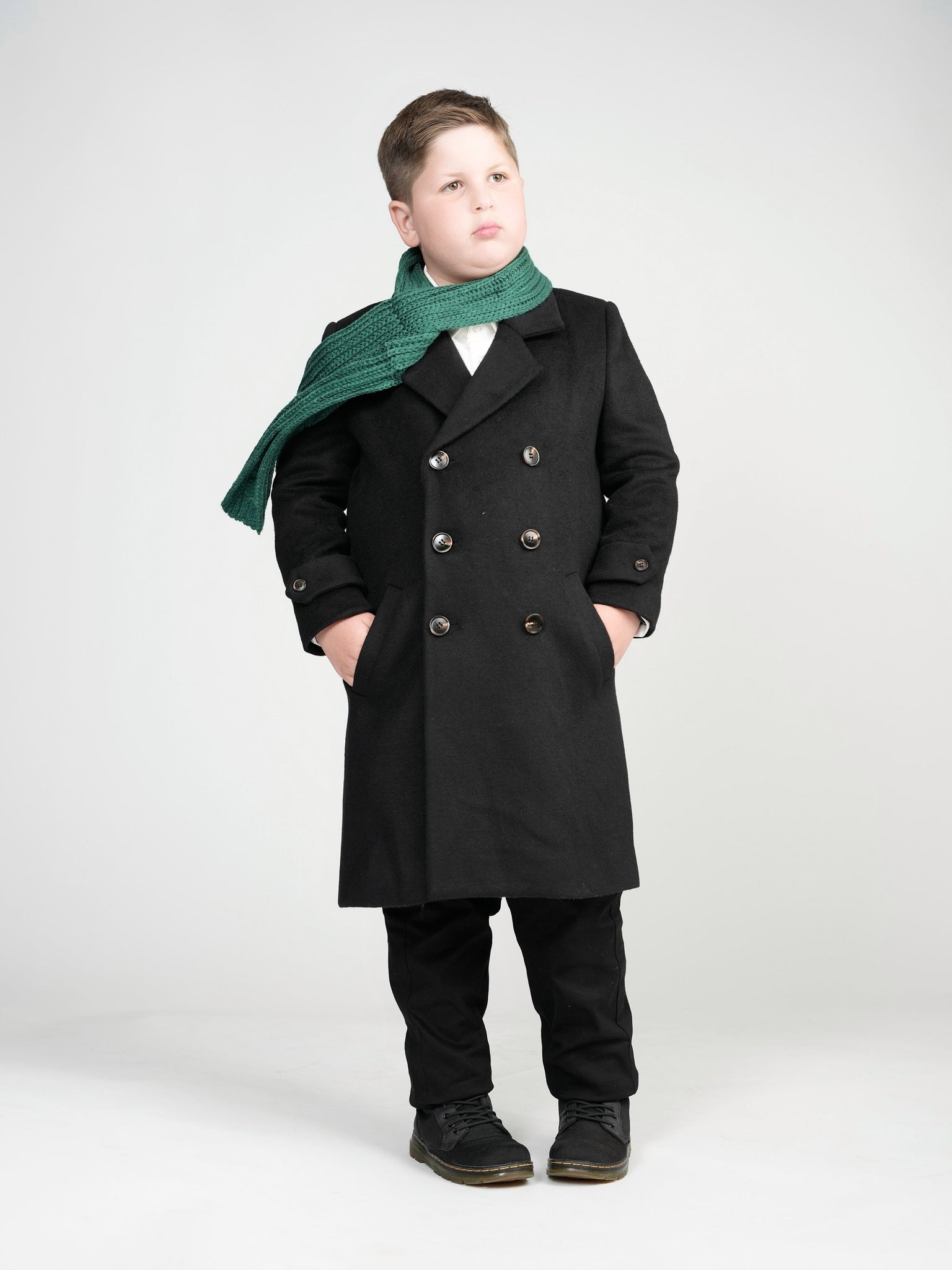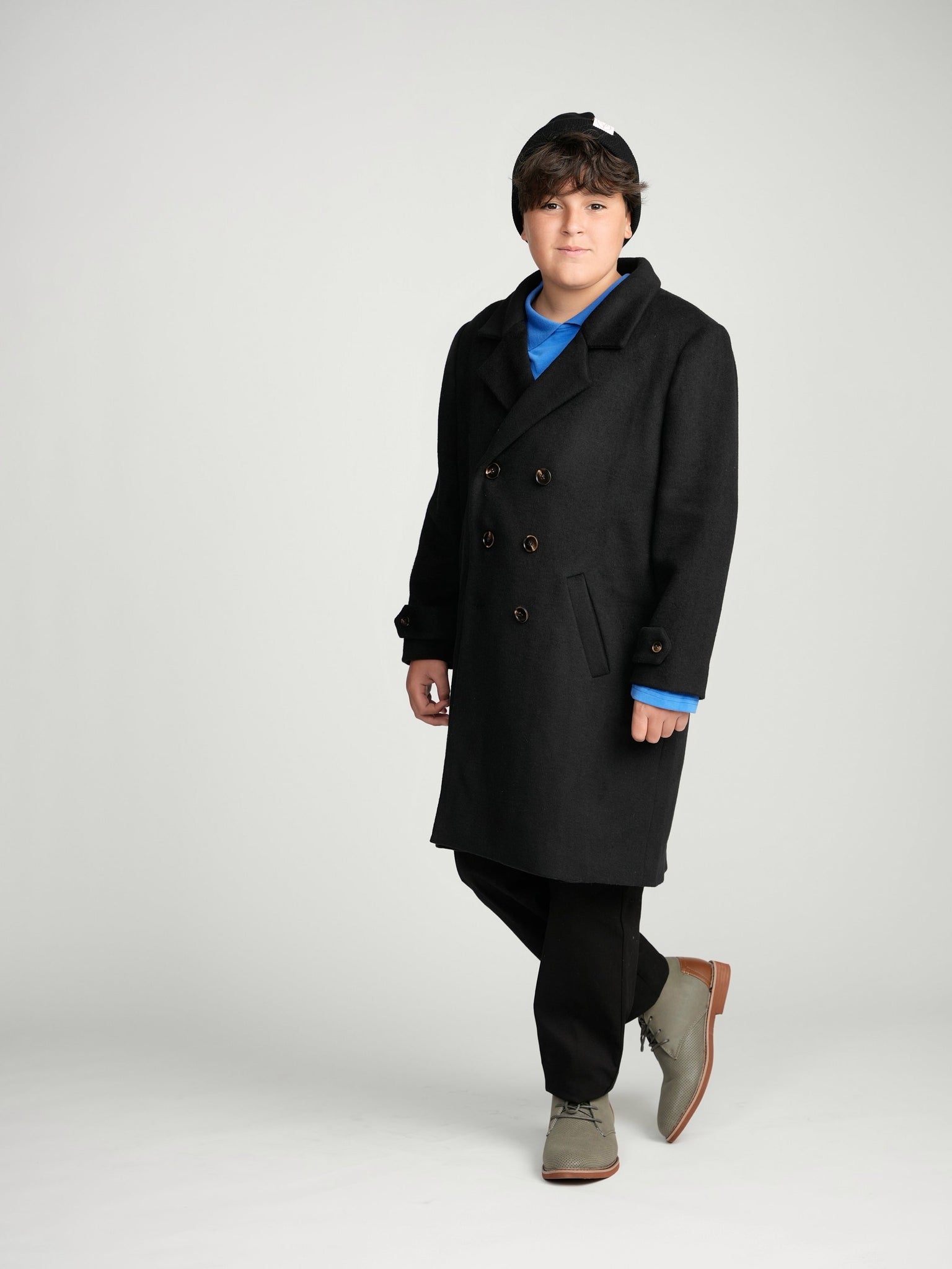 Our black double breasted peacoat will elevate any look while keeping you nice and warm. Crafted from a polyester/wool blend with double breasted buttons, notch lapels and flap pockets to add sharp finishing touches.