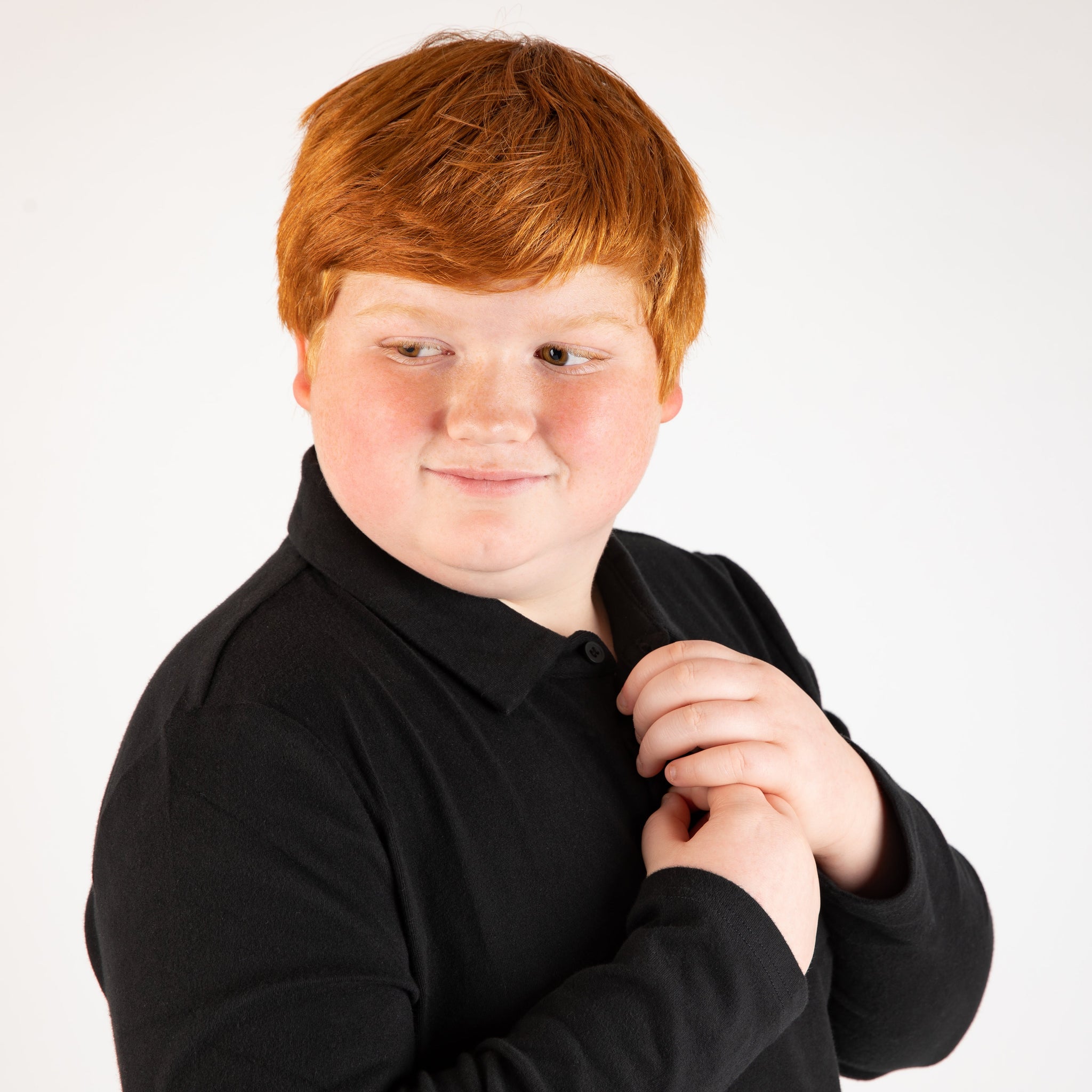 Our black solid polo is made from a soft black cotton/spandex blend for a comfortable fit with a little stretch. With a spread collar, 4 buttons and a cuff sleeve making it easy to role up when you got lots of school work to do.