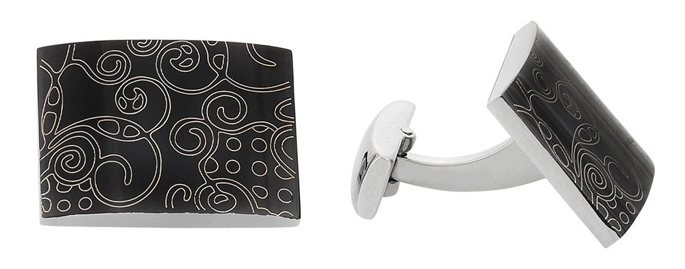 Stainless steel is a work of art in its own right but with the addition of black enamel and an intricate design, this pair is a picasso. The neutral colors mix in well with various fashion items and other accessories you might wear. 7/8 by 5/8-inch, these cufflinks are the perfect size for your favorite French cuff shirt. Comes with its own gift box for presentation and storage.