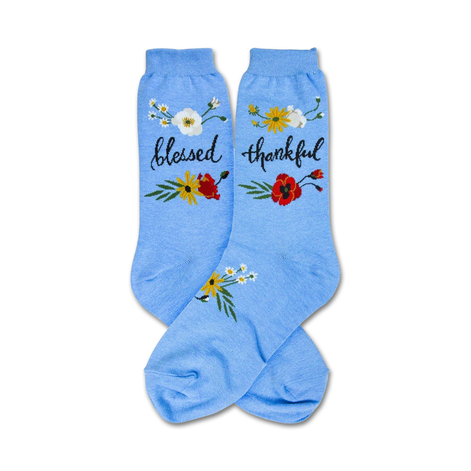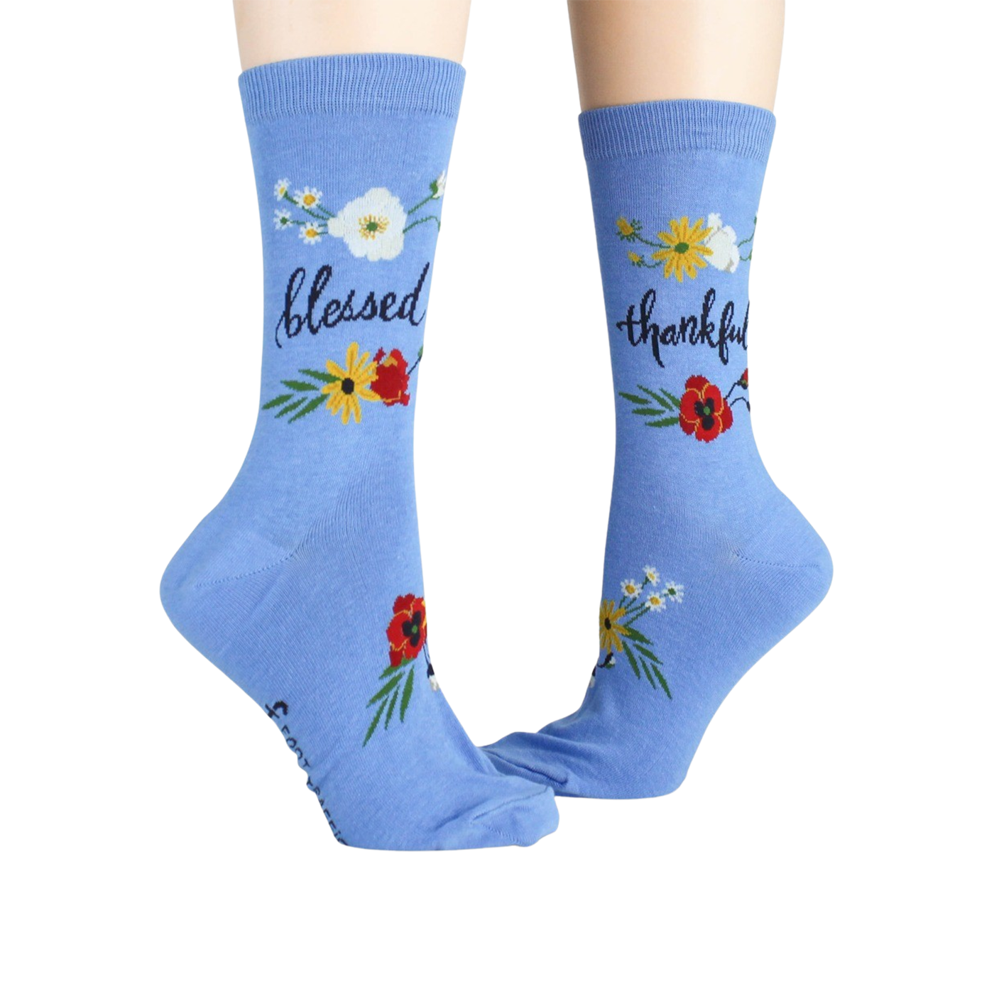 Who's feeling blue? Not you with these chill crew length Blessed socks! Whether you're counting blessings or thankful for comfy feet, these soft socks are the holy grail of your sock drawer. Floral patterns and faith-inspired sayings will keep your look fresh as a daisy. Ready, set, style!