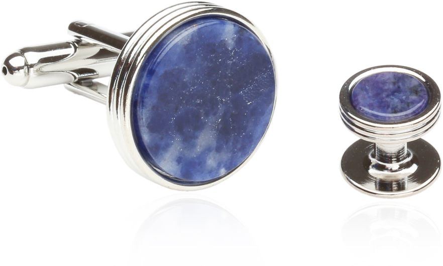 Give your look a new and unique look with this formal sodalite collection. You'll get a pair of cufflinks and a set of studs that all work together to create a pleasant blue accent to any outfit. The deep blue sodalite stones have a unique design that keeps them from looking the same as one another. The set is unique, and it's something cool that you'll be proud to show off. Just make sure that you wear it with something that's going to look nice with the pleasant blue color. The set makes a good gift as well to the right person.