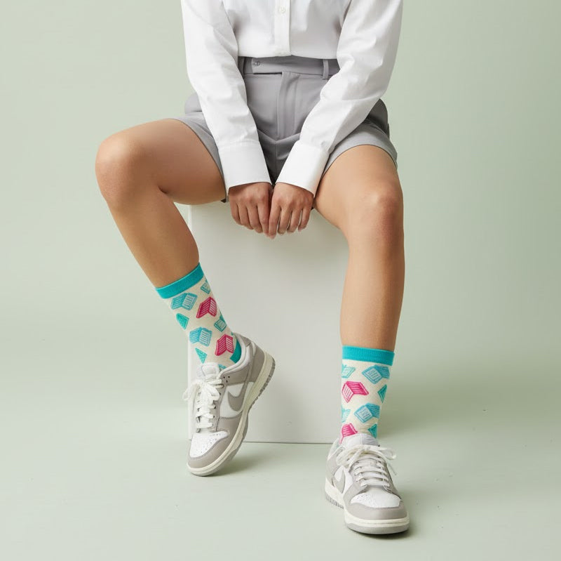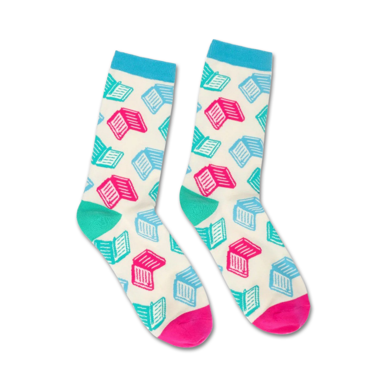 Get your literary toes on with our Books, Books, Books novelty socks! These white crew socks feature a fun pattern of books in pink, blue, and green. Show off your love for reading in style while enjoying the comfort of our soft and durable cotton blend. Whether you're curling up with a good book or hitting the library, these socks will have you feeling like you're stepping into your own personal library.