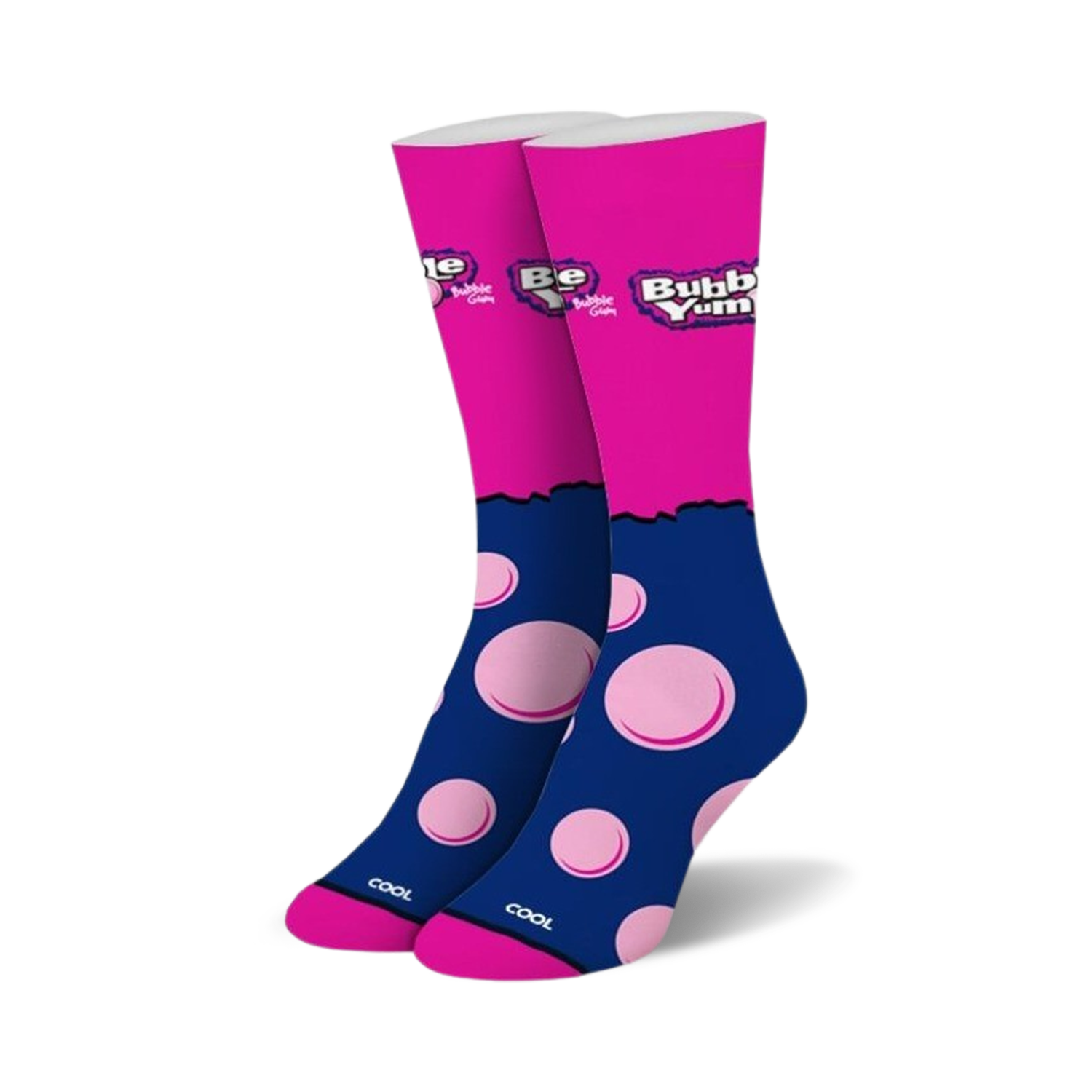 Bubble Yum socks are here to add a splash of fun to your feet! These pink and blue socks feature light pink bubbles, and the word "cool" written on the pink part. Perfect for women who appreciate the sweeter things in life, Bubble Yum socks will make a statement wherever you go. With their crew length and playful design, Bubble Yum socks are sure to turn heads.