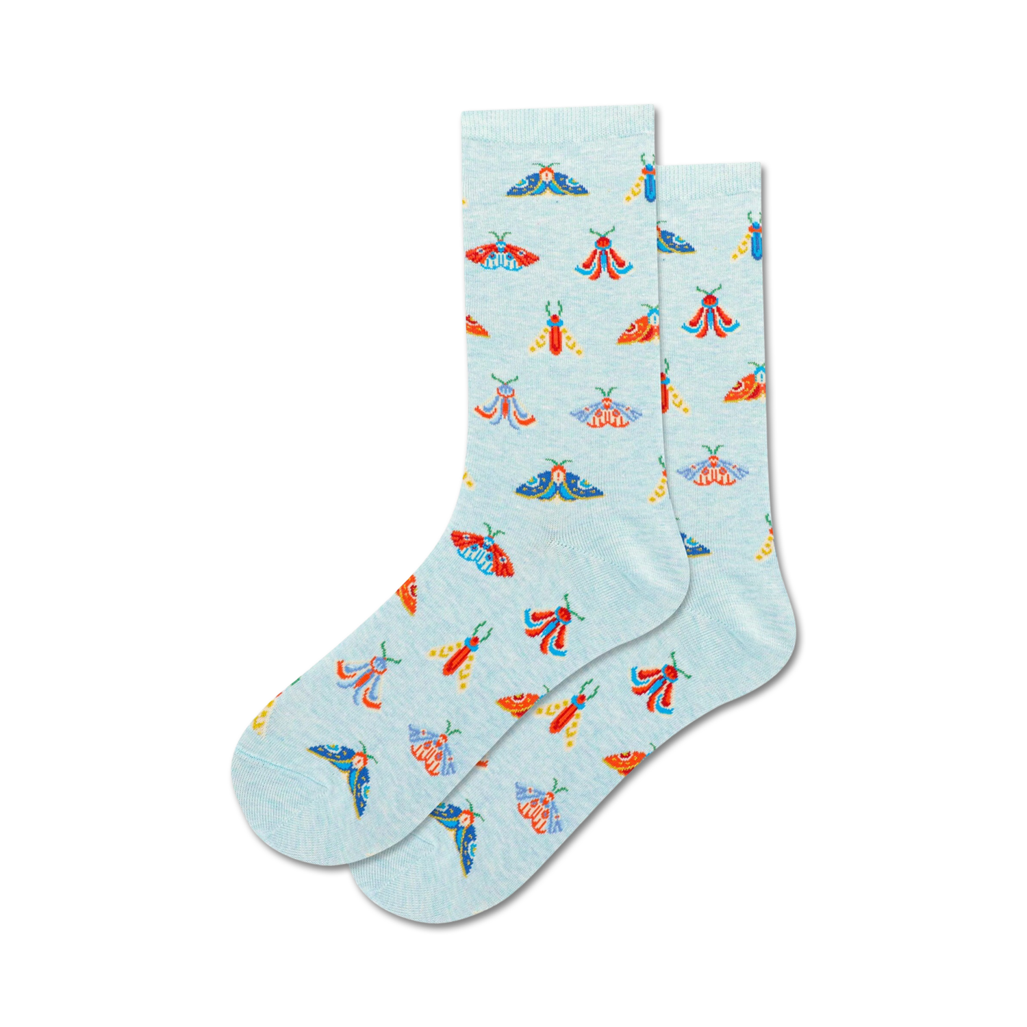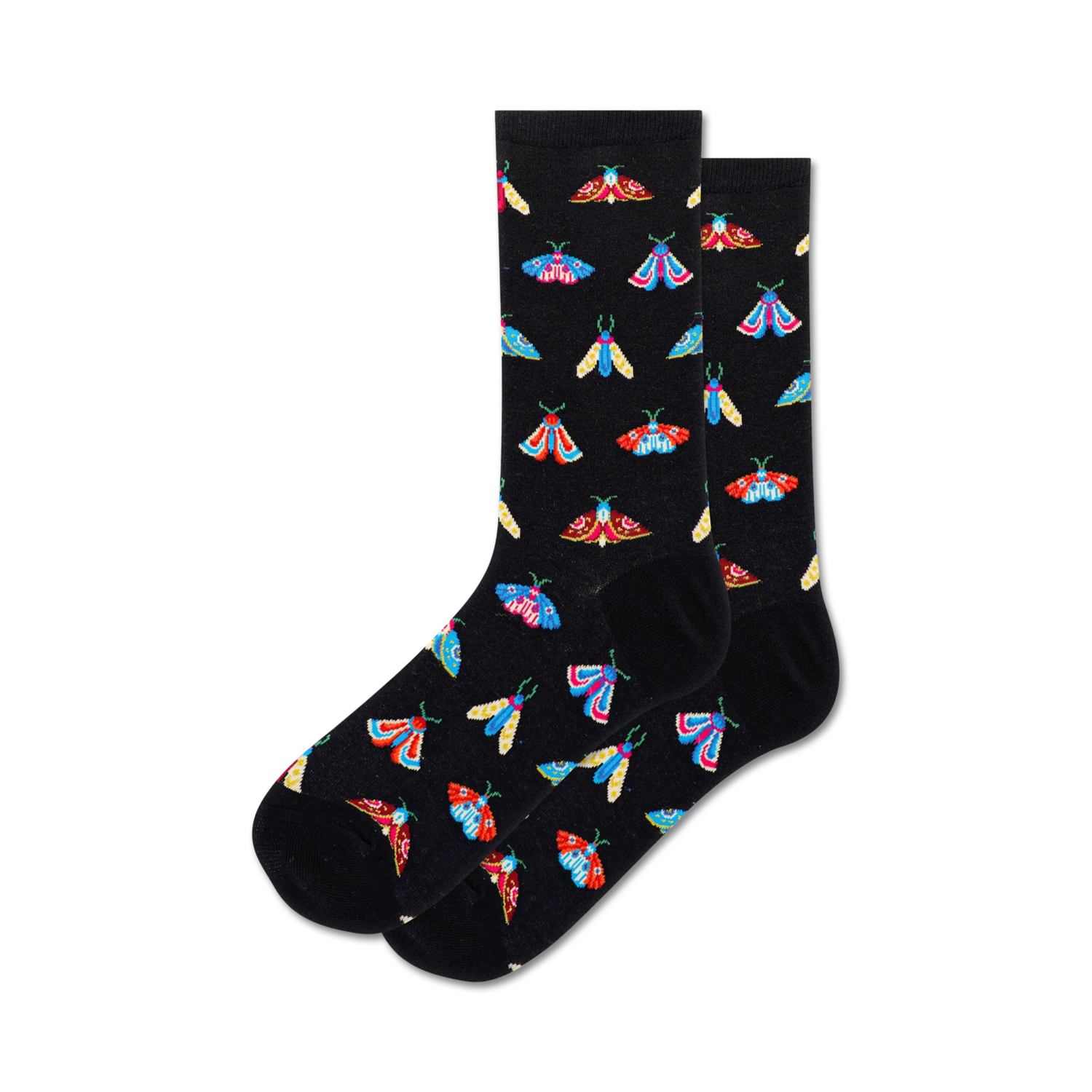These black crew socks are no moth-er joke! The multicolored bug pattern features moths of all shapes and sizes, adding a touch of whimsy to your everyday wardrobe. Perfect for the entomology enthusiast or anyone who loves a good pun.