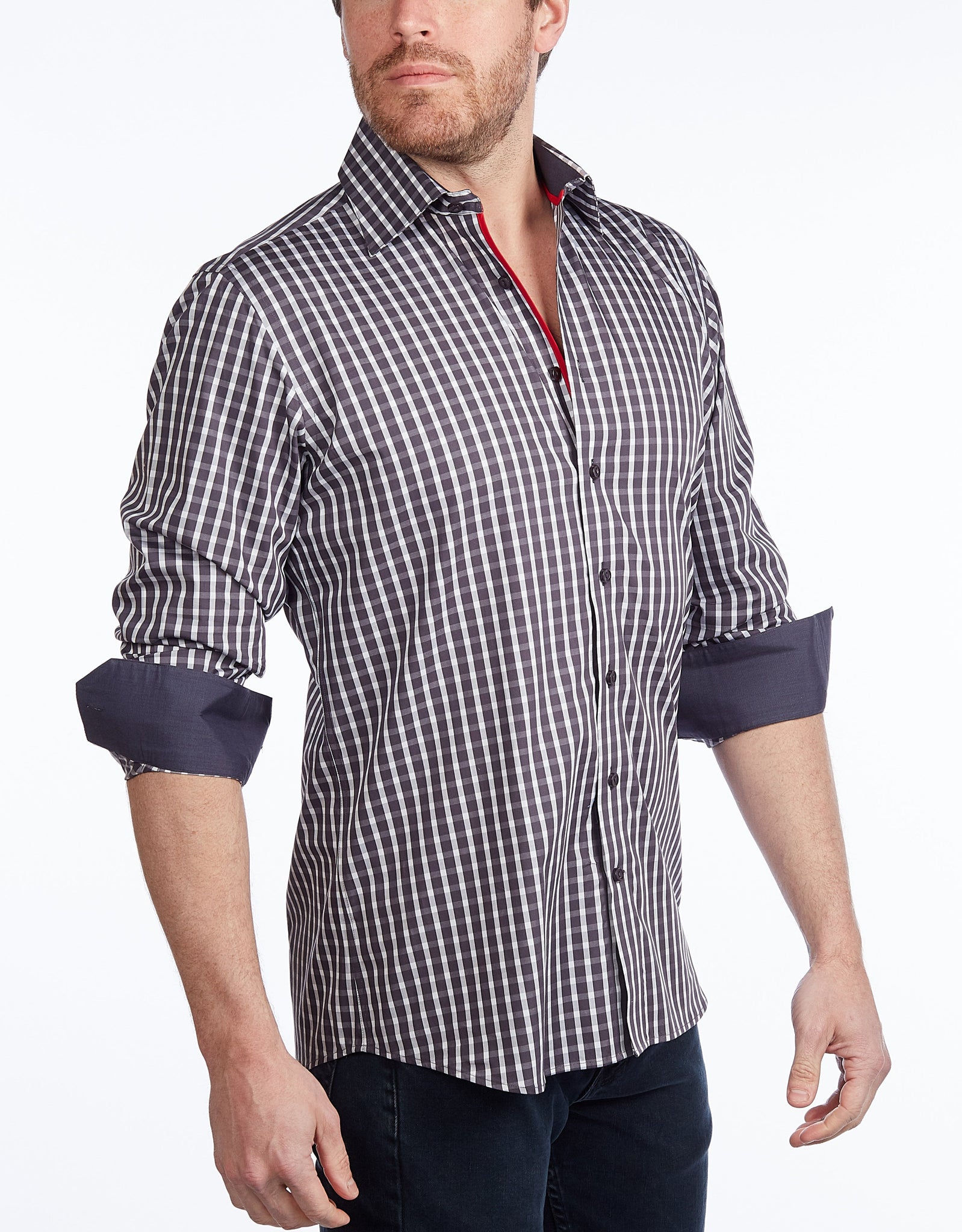 Button-Up Shirt I Charcoal -  Contemporary Fit - Contrast trimming