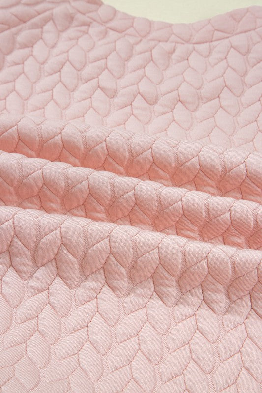 This playful two-piece set features a braided texture and a wide leg cut that effortlessly blends style and comfort. The top’s ruffled hem adds a touch of graceful charm, while the elastic waistband with a functional drawstring ensures a perfect fit. With handy side pockets and a loose silhouette, this outfit delivers casual chic with a fun twist. Perfect for making a stylish statement wherever you go! Polyester/Spandex