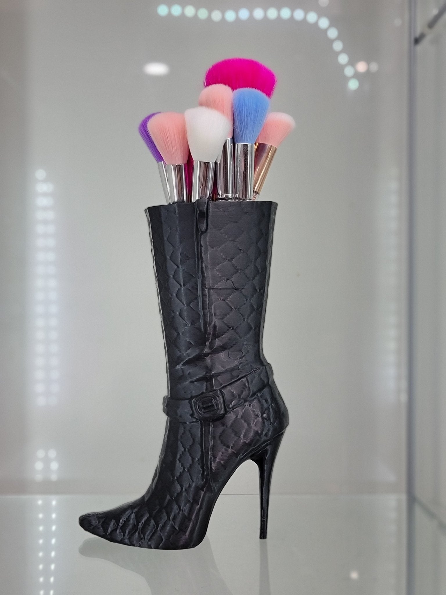 Add a touch of glamour to your vanity or home decor with this 3D-printed high-heel boot holder! 👠✨ Perfectly designed to hold up to 10 makeup brushes, it also doubles as a unique vase for your favorite flowers. 🌸 Crafted with intricate detailing and a sleek finish, this holder is the ideal accessory for fashionistas and beauty lovers alike. 💖 Whether you're organizing your makeup brushes or creating a stylish centerpiece, this boot holder brings elegance to any space.