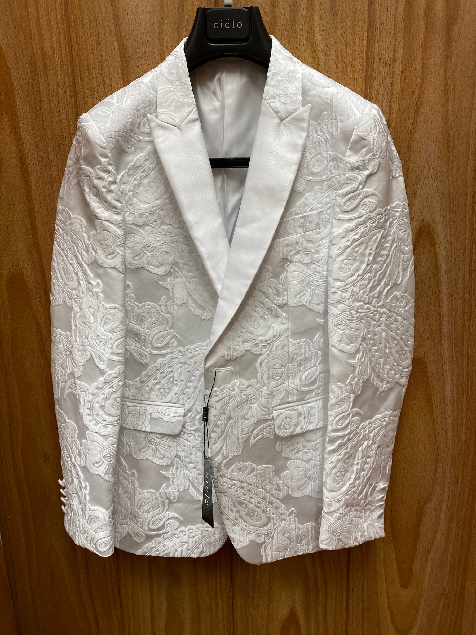 Cielo BBT3579-2 White Paisley/Floral Print Slim Fit 1-Button Blazer 34R-56R