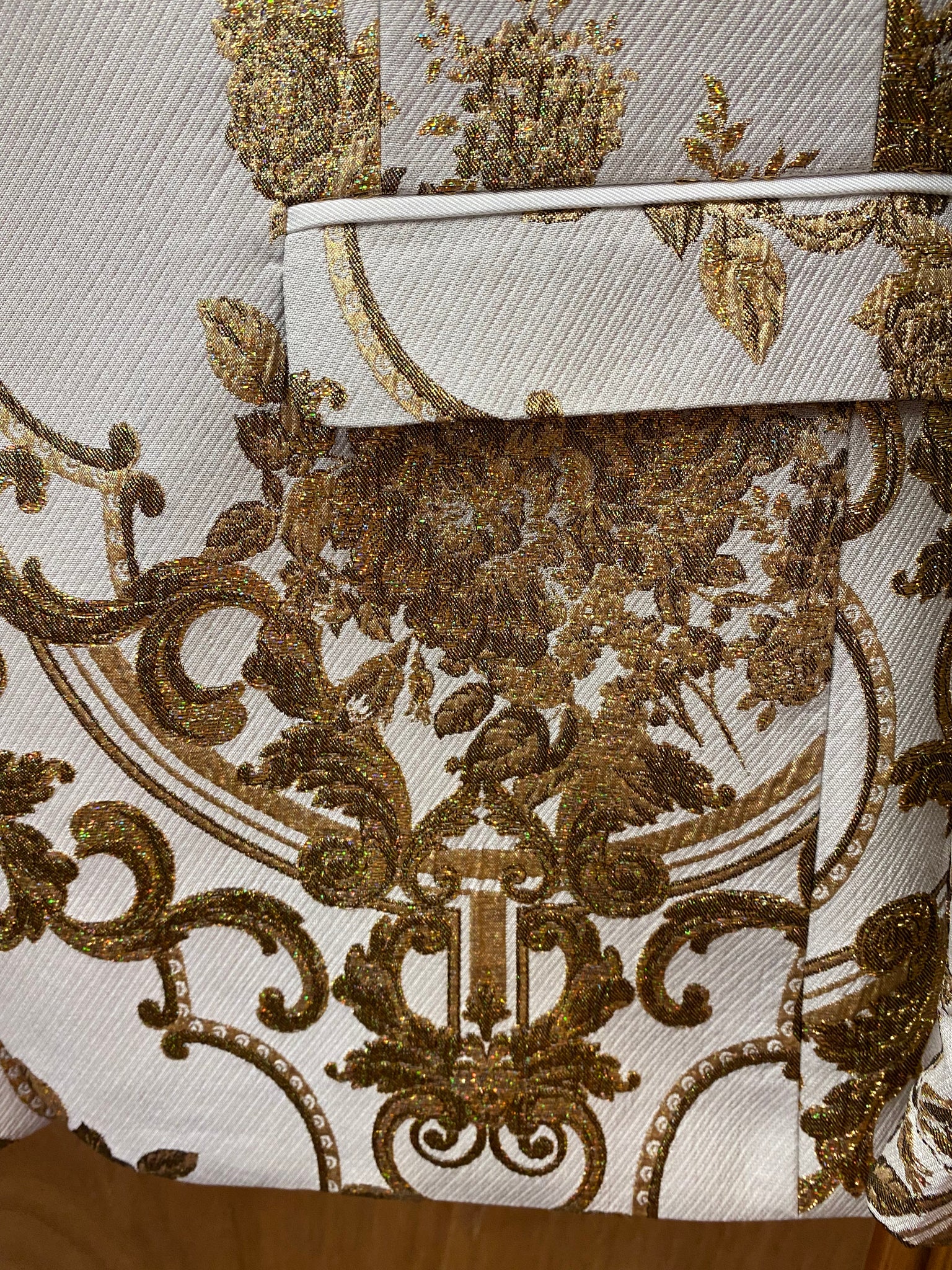 • pff white with gold fancy brocade print
