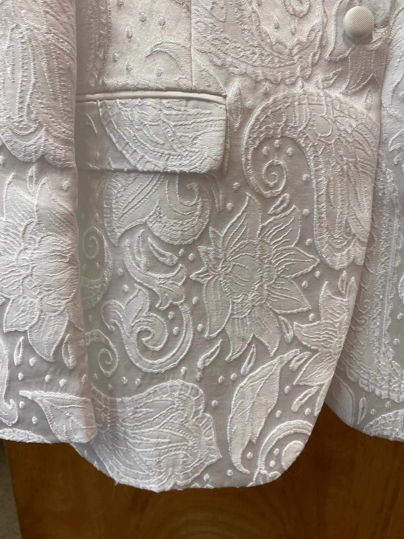Cielo White Paisley/Floral Jacquard Print 1-Button Blazer