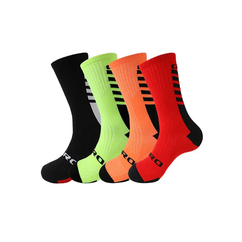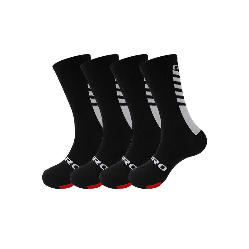 These Compression Cycling Socks offer targeted compression to improve blood flow and reduce muscle fatigue during cycling. The graduated compression design applies pressure to key areas, decreasing swelling and improving performance. Made with breathable materials and a snug fit for added comfort.