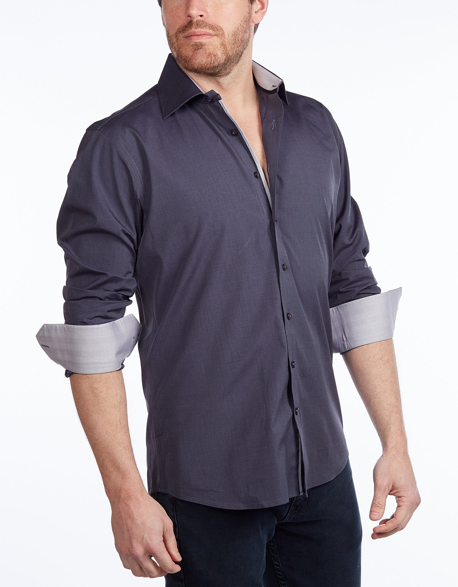 Contrast Collar Button-Up Shirt //  - Contemporary Fit - contrast  trimming - final sale