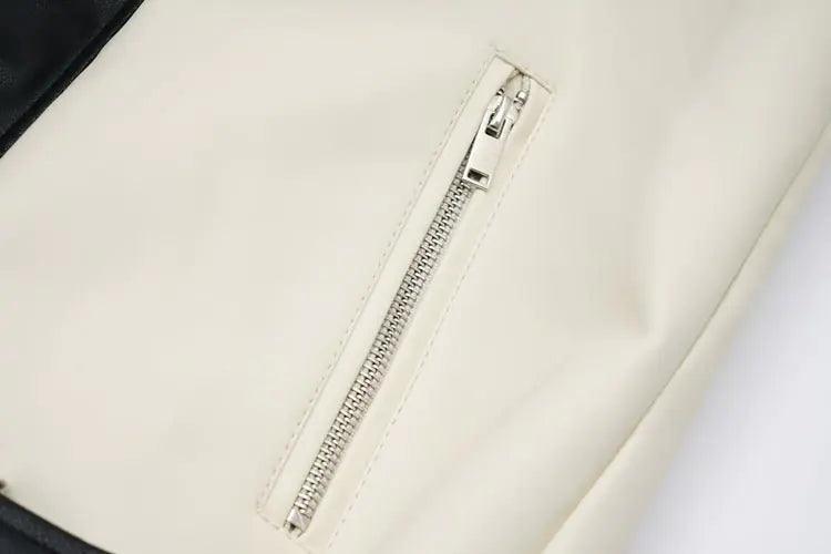 Contrast Detail Vegan Leather Jacket - Ethical Fashion