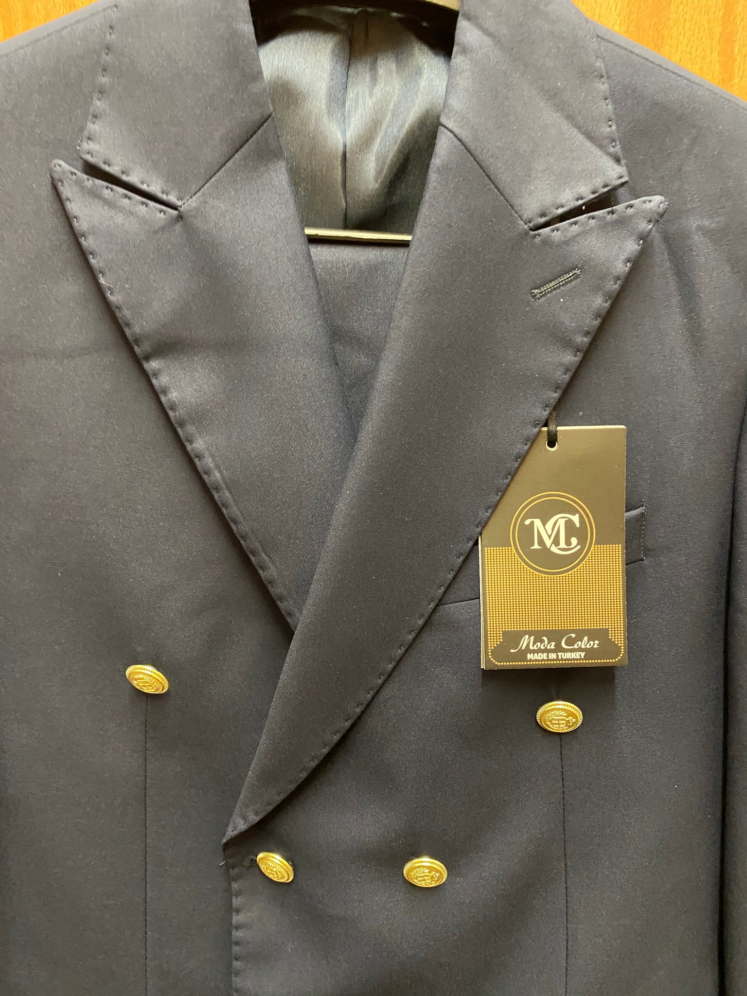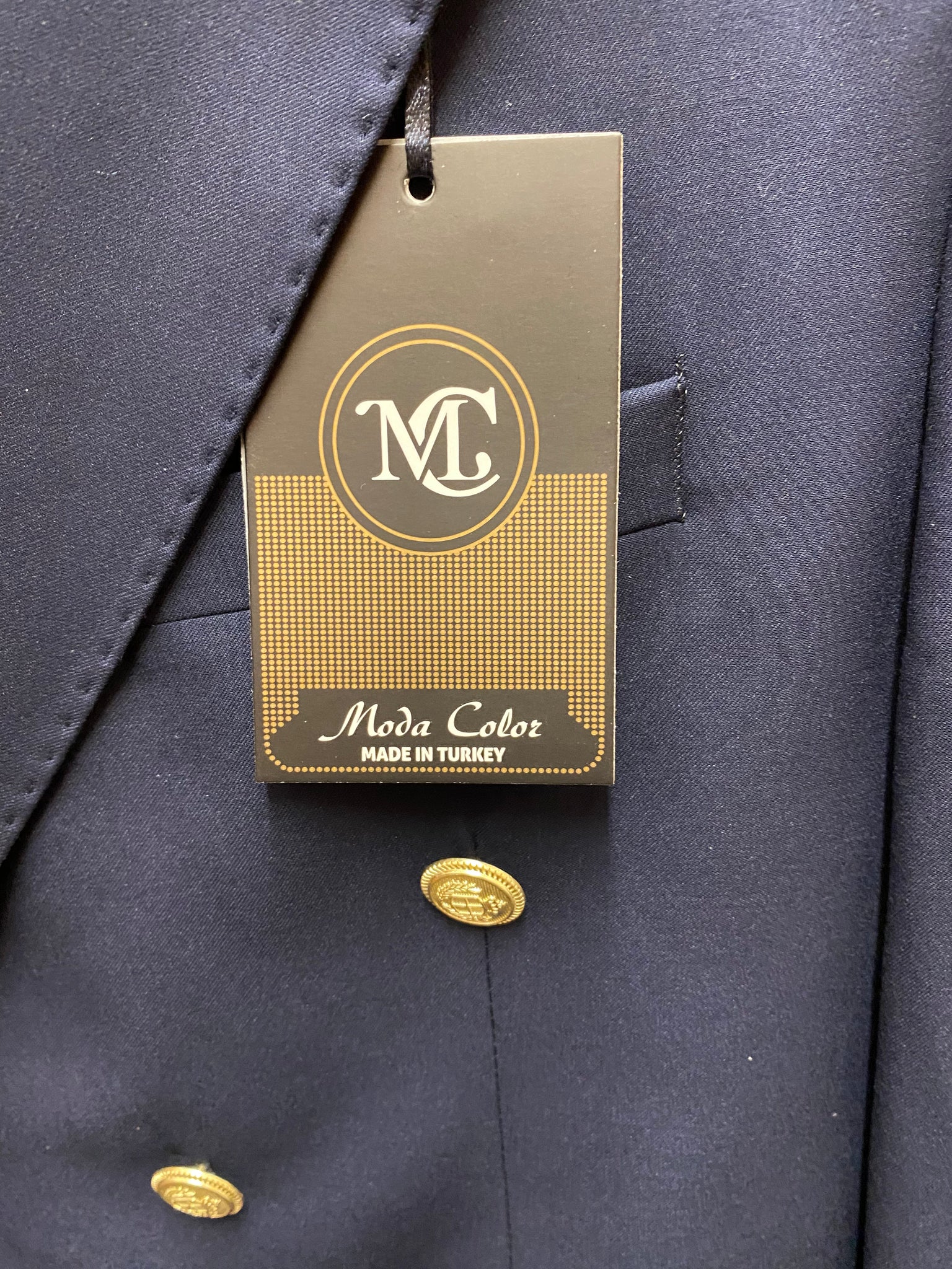 Moda Color brings you a wool double breasted suit with an European twist. Gold buttons help to highlight and accent this suit to give it a more distinguished and rich look.