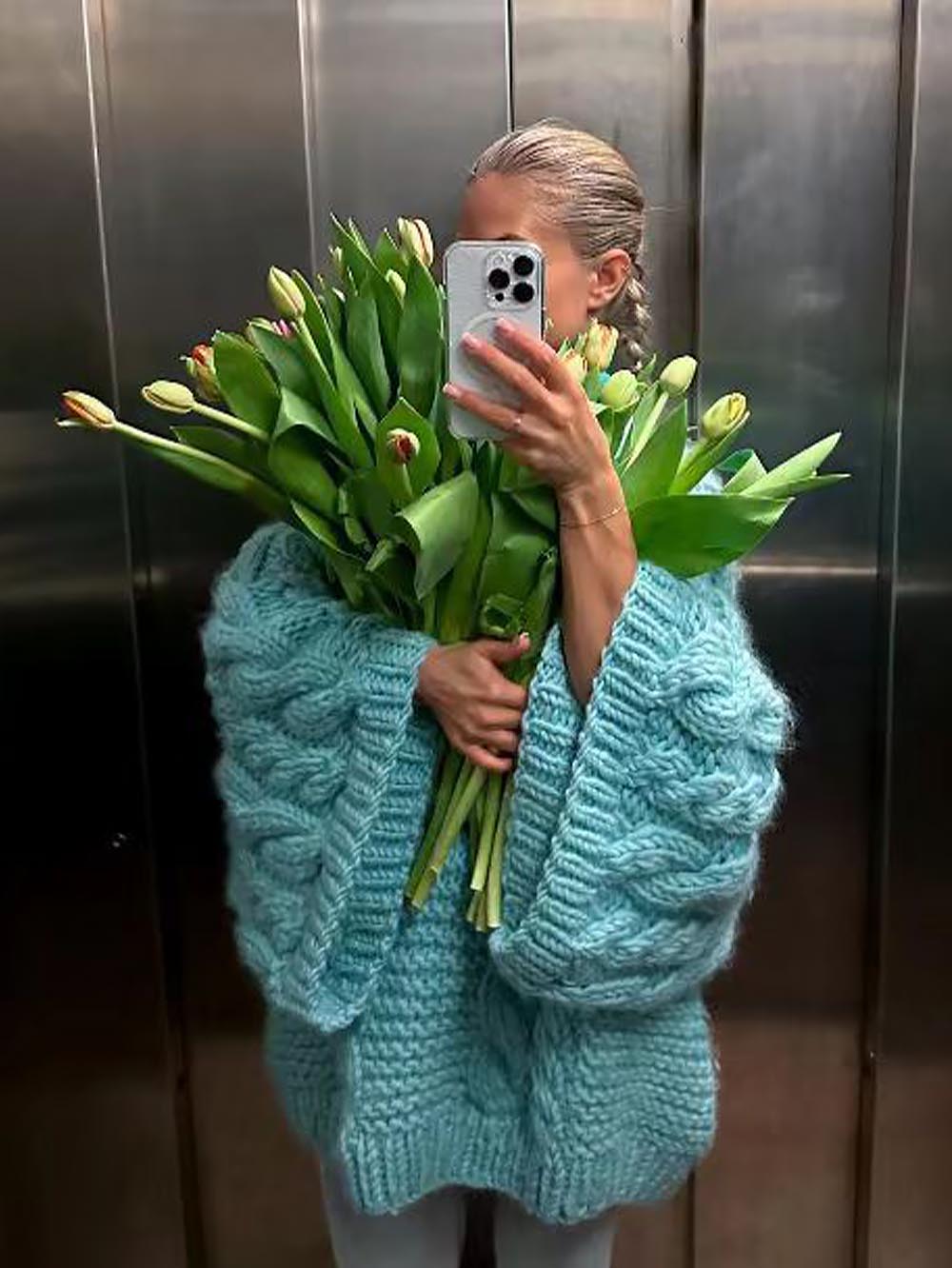 Upgrade your wardrobe with this elegant bell sleeve cable knit sweater. Made from soft and breathable fabric, it provides warmth and comfort. The unique bell sleeve design paired with classic cable knit craftsmanship adds a touch of sophistication and charm. Its loose fit suits all body types and pairs effortlessly with jeans, skirts, or leggings. Perfect for casual outings, office wear, or cozy autumn/winter days.
