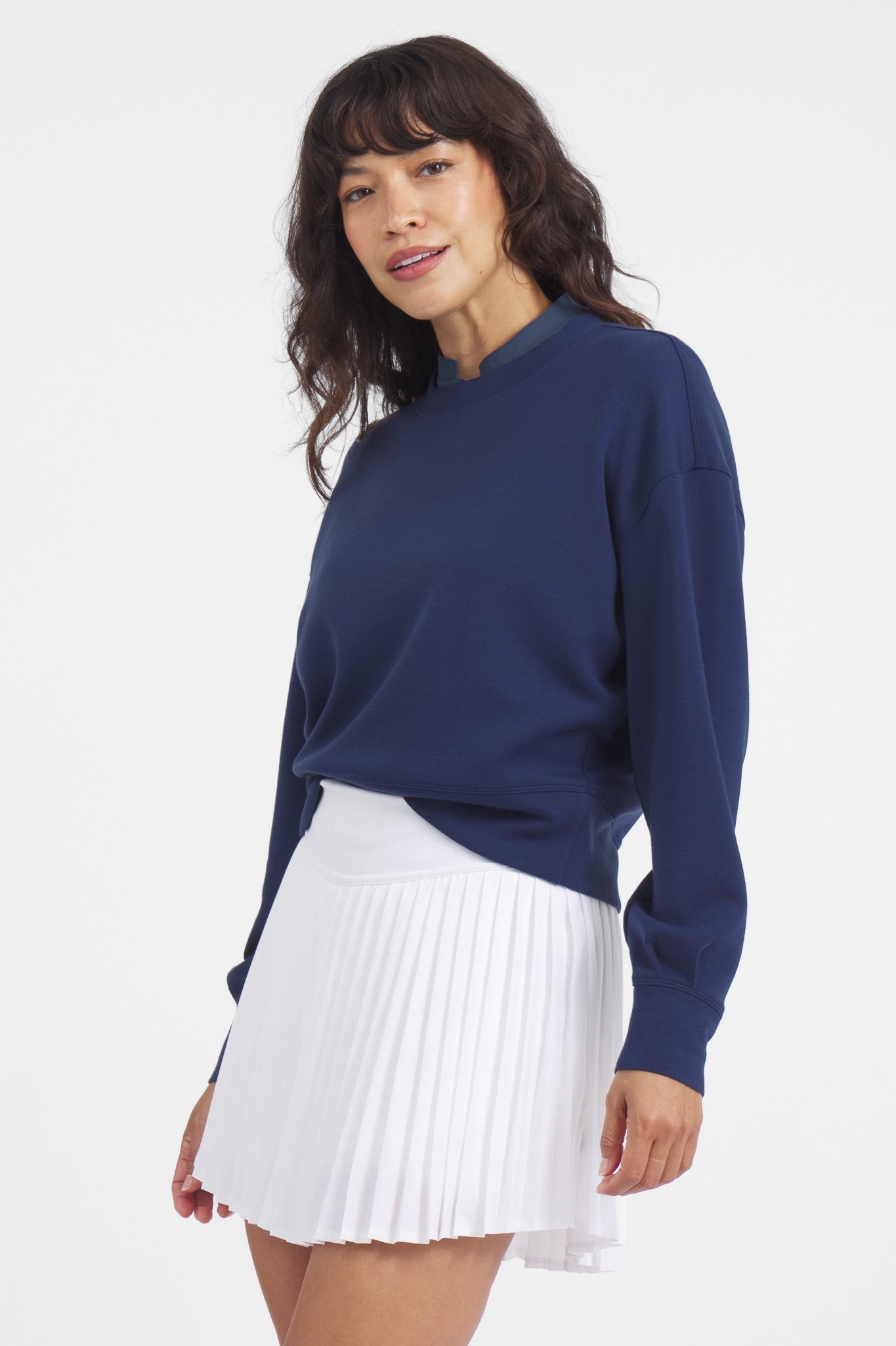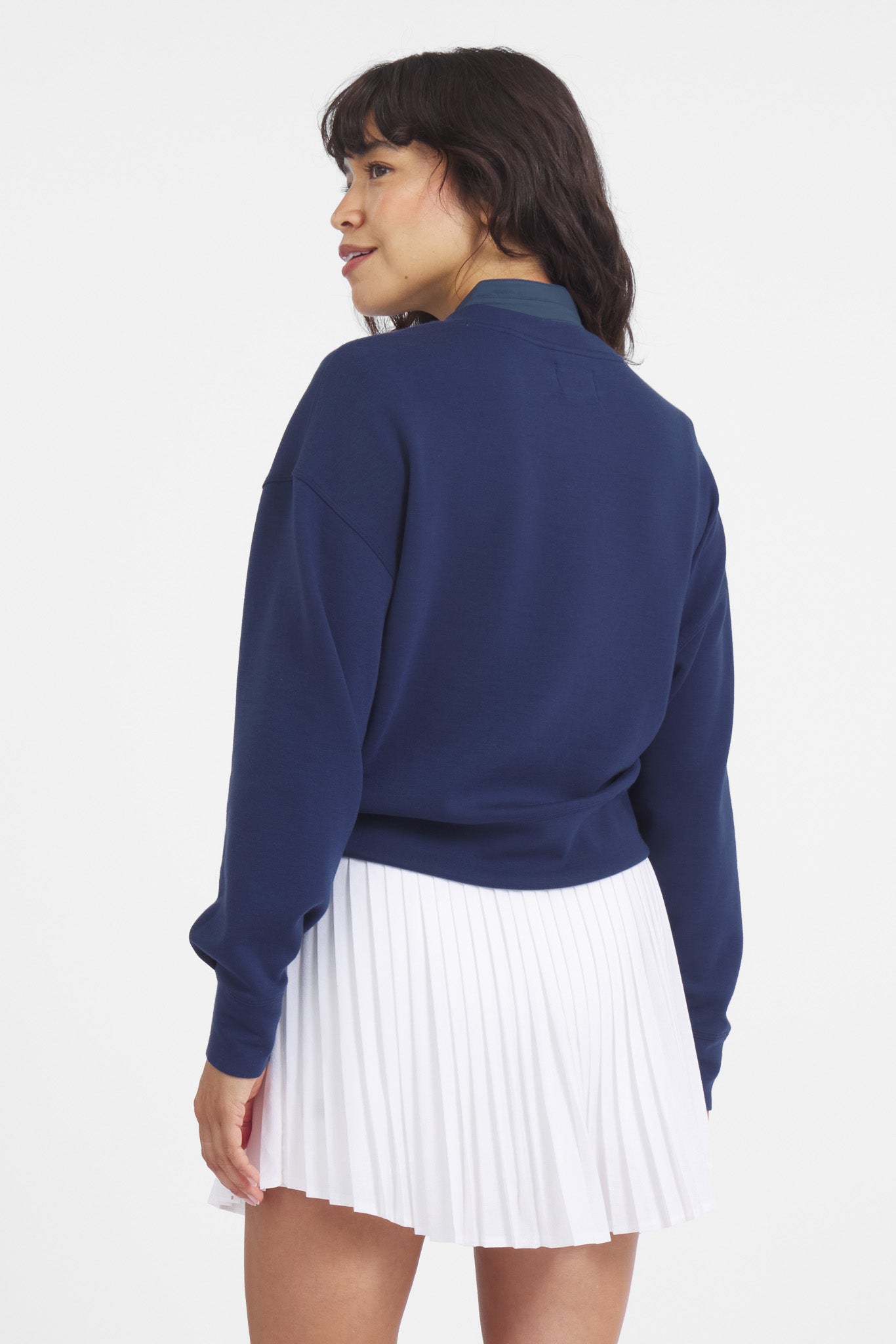 The layer you’ll reach for again and again. This ultra-soft pullover is made from a blend of Tencel, recycled polyester, wool, and spandex. Featuring banded cuffs and a cropped waist for performance and style.