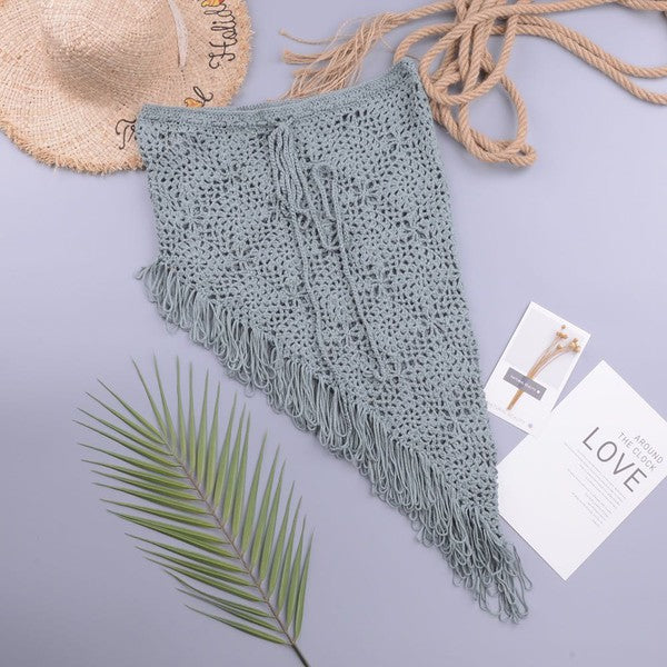 Crochet cover up skirt with fringe at bottom