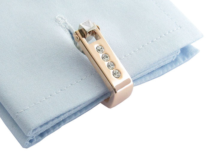 For the love of all things formal These Crystal Cufflinks Rose Gold by Rudolph Alexander are dapper with a capital D! The unique V-shape of these cufflinks allows them to wrap around your cuff for a look thats unexpected. Soft rose gold plating over quality rhodium is given an added touch of elegance and formality with 3 Austrian crystals that add just the right hint of brilliance to your look. The Crystal Cufflinks Rose Gold are absolute perfection for dressing up your formal wear or adding a luxe touch to business attire.