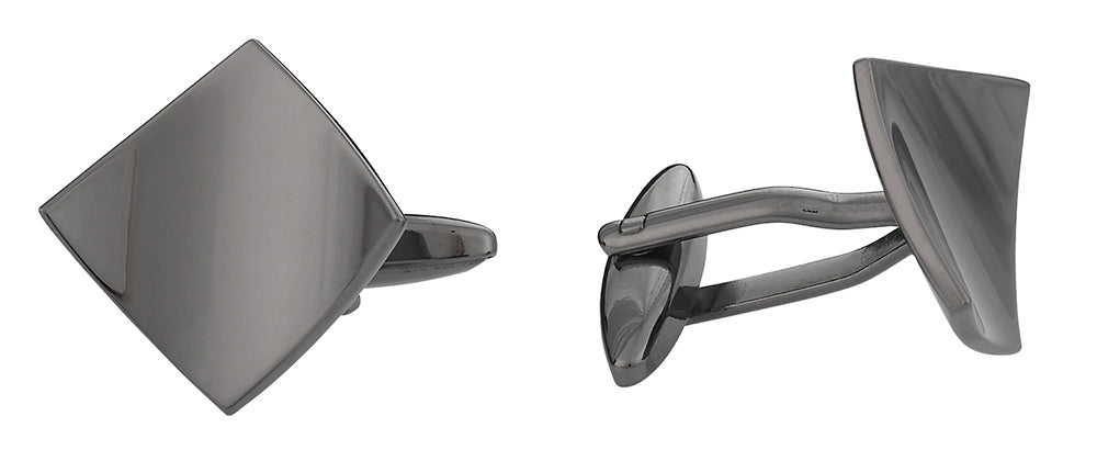 These gun-metal-coloured, slightly curled, ingeniously constructed cufflinks are 5/8-inch in length on each side. Elegance and style has never been so accessible with these marvelous cuflinks. Because of their neutral yet sophisticated look, you could put them on your sleeves no matter what color your shirt is. This versatility makes them especially appealing if you're thiking of giving them as a gift. Since each set bought comes in a small gift box, you won't even have to buy one to give them away!