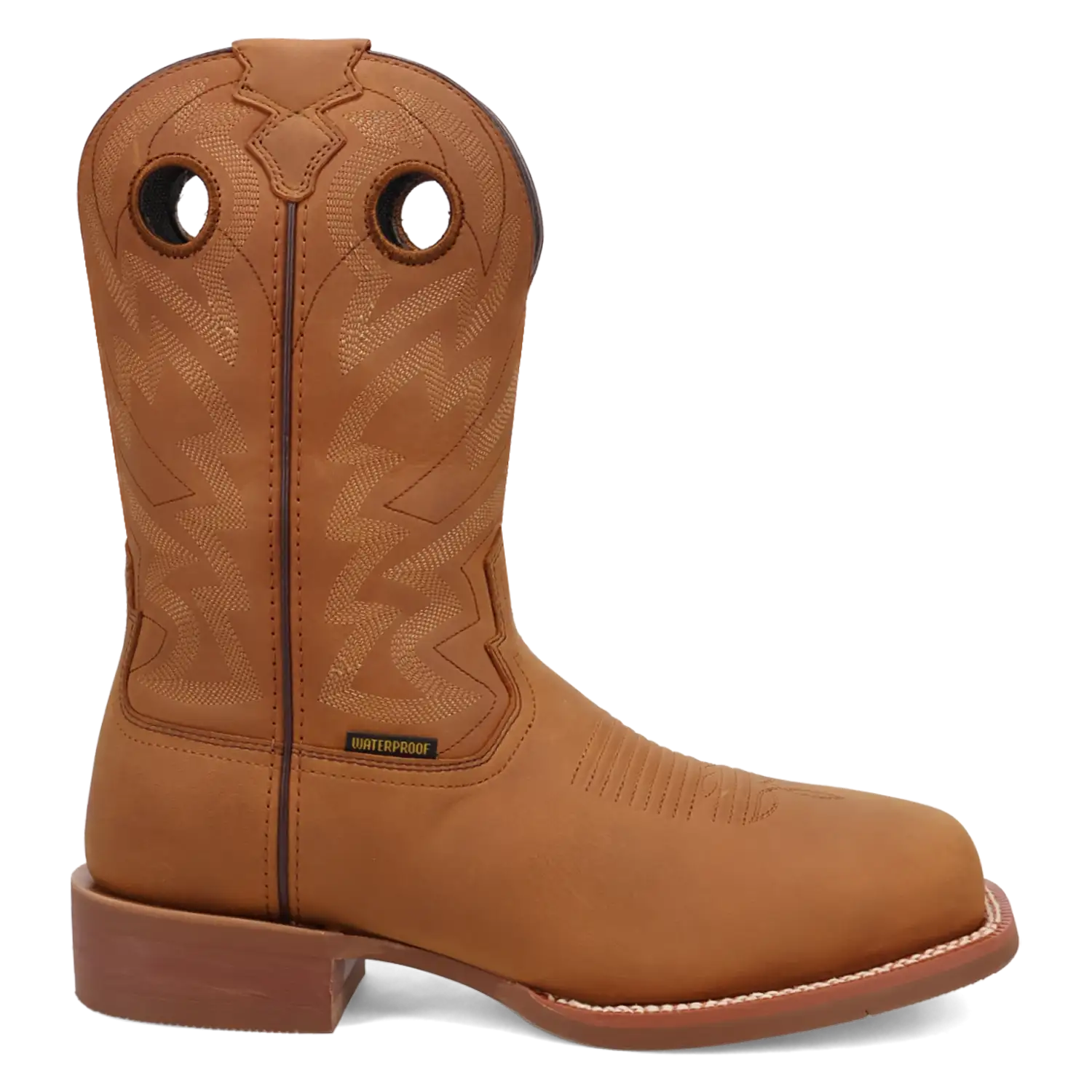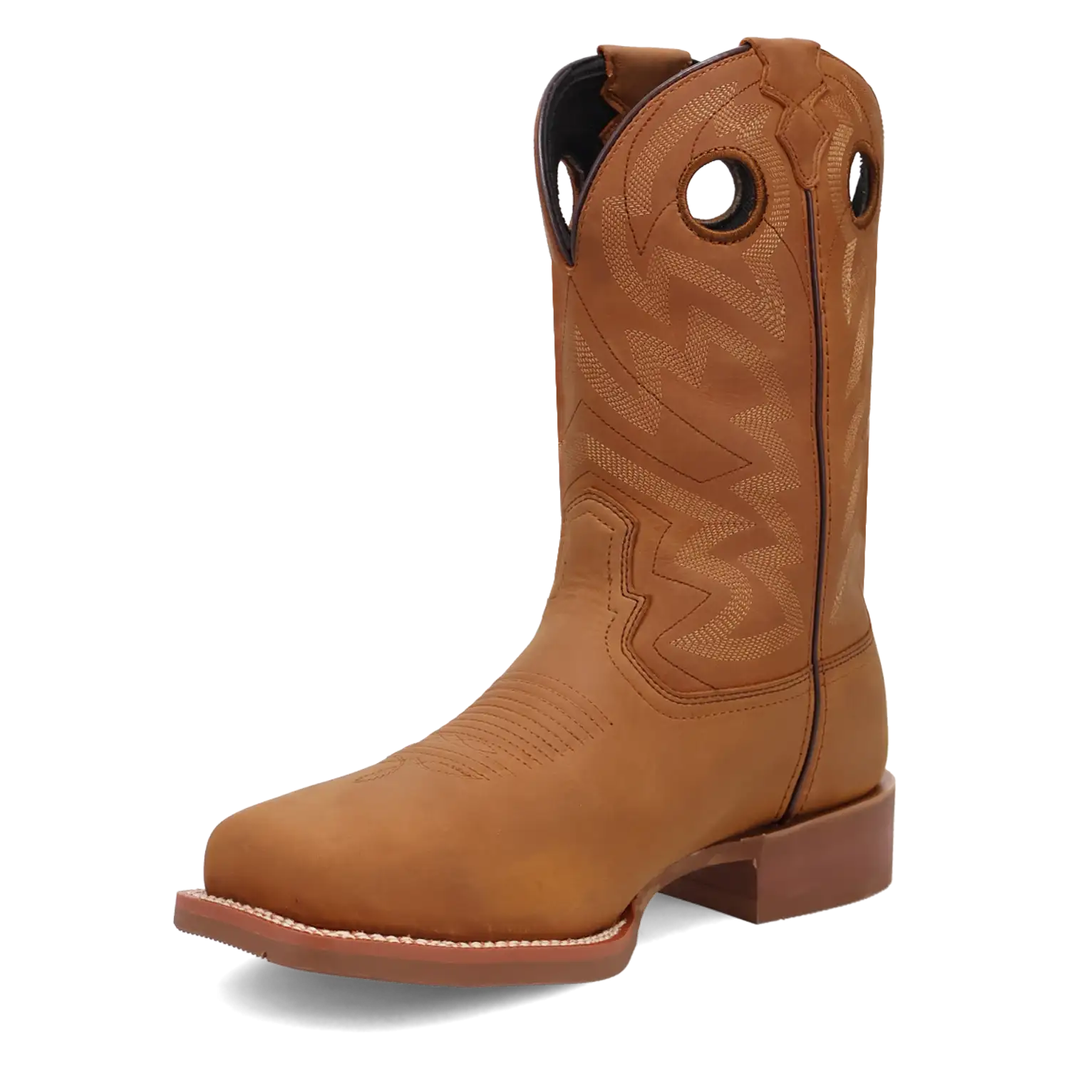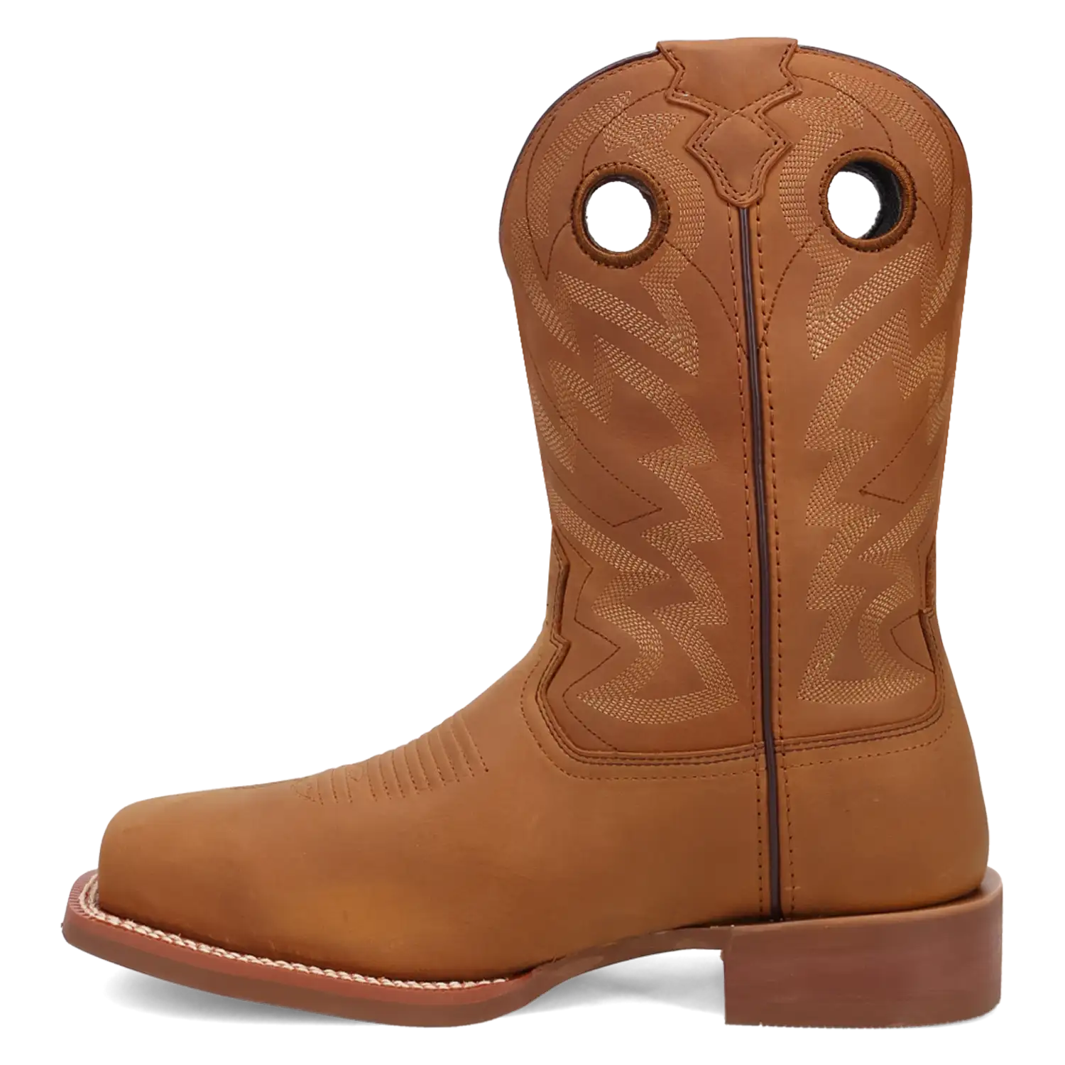 The tan leather shaft is detailed with classic embroidery that adds a sharp, clean finish to the boot’s rugged appeal. It's a design that means business—with just the right touch of character.