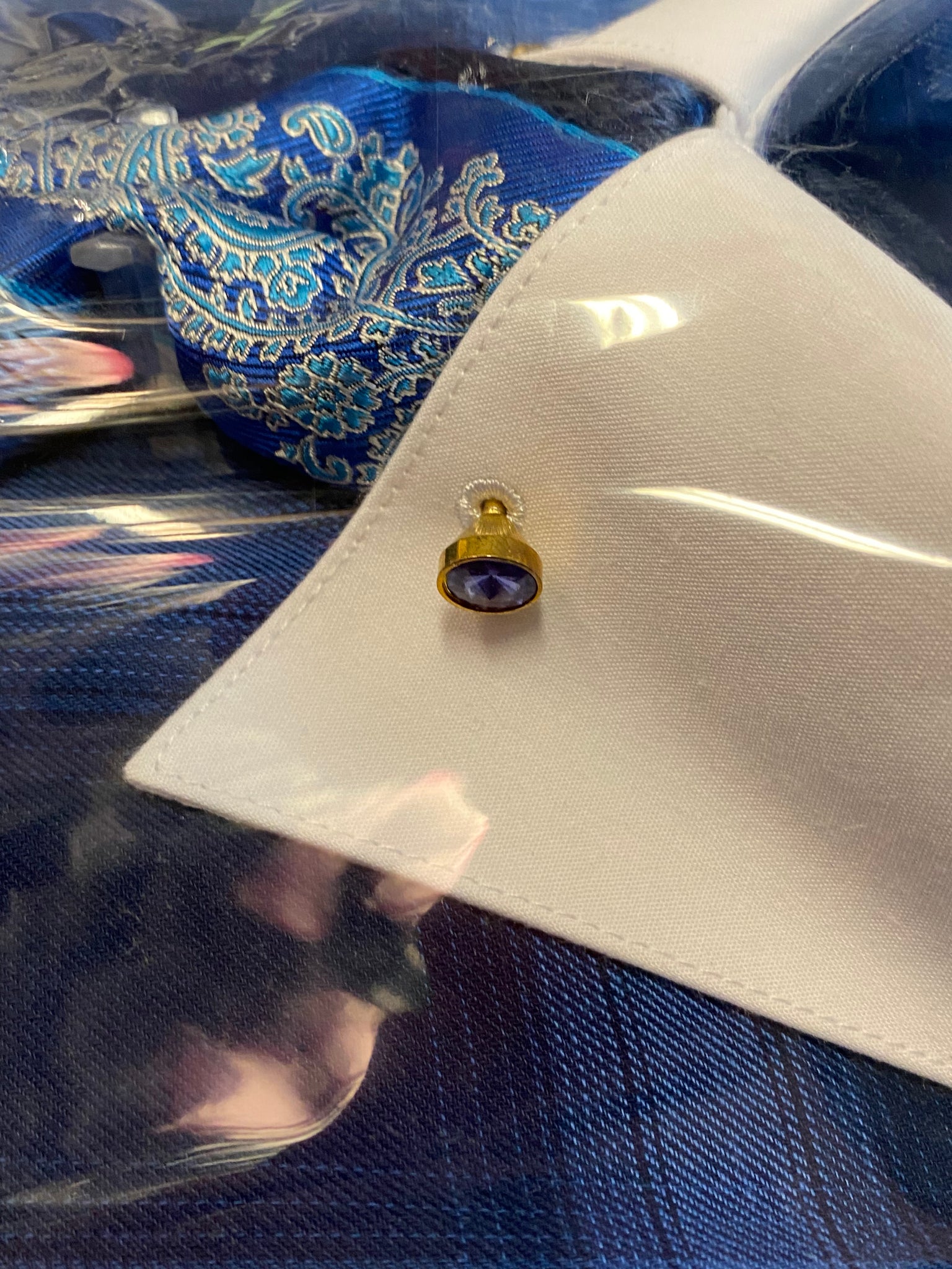 - paisley tie with matching hankie