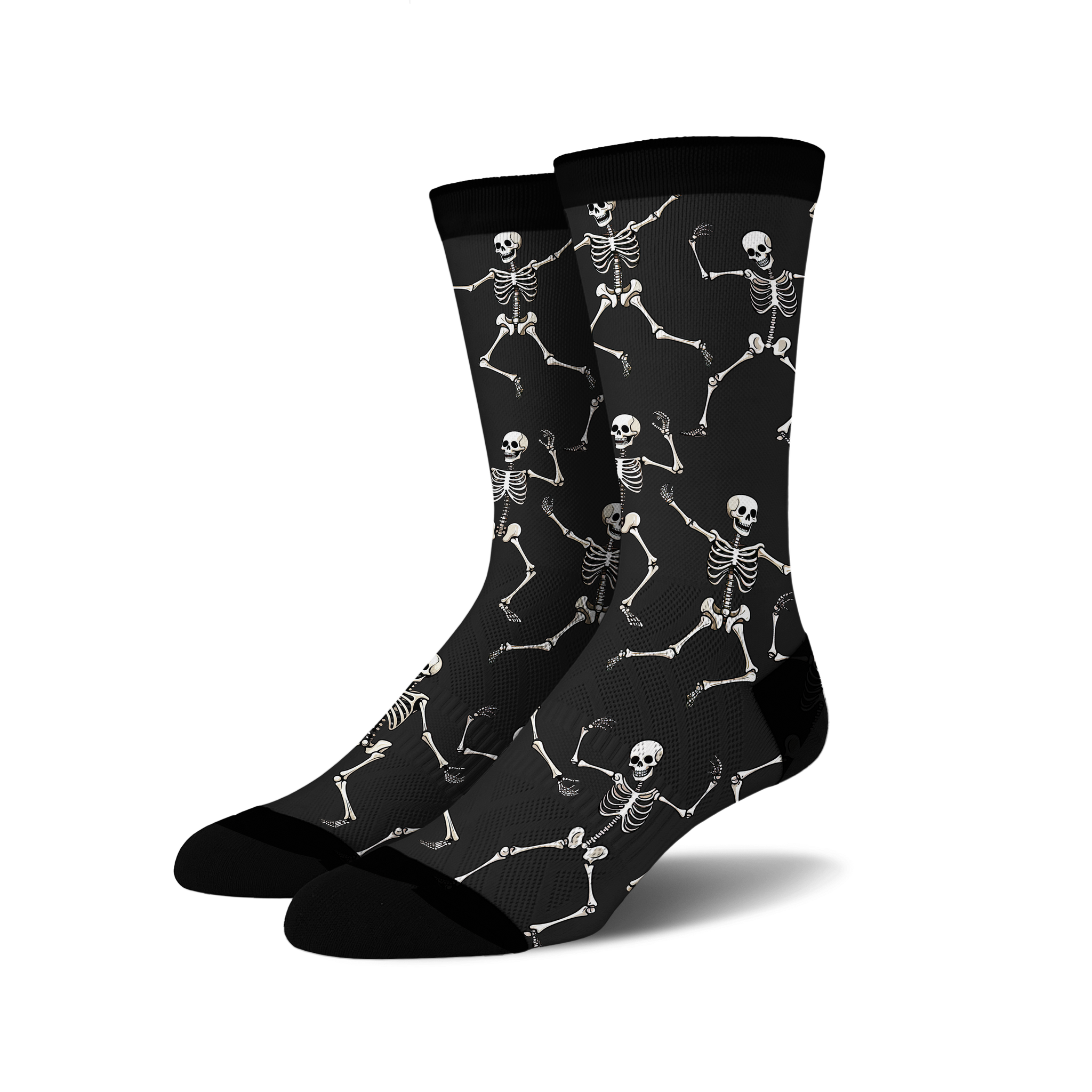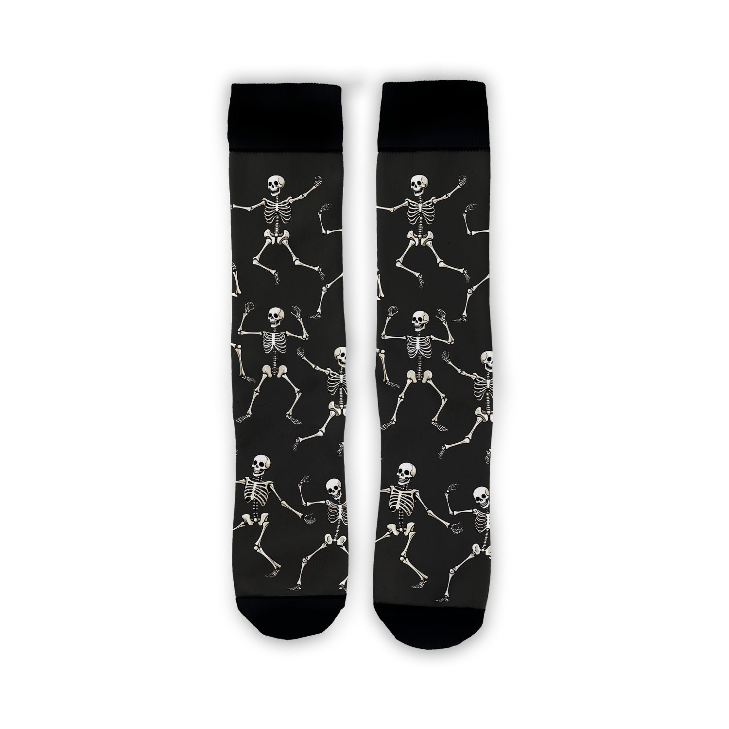 Let your feet join the groove with these quirky, skeletal sensations that jive and jingle with every jiggle. Each sock is plastered with playful bones boogieing down, ensuring you step into the Halloween spirit with flair and fun. Crafted for both the spook enthusiasts and those just looking to tickle their funny bone, our socks guarantee giggles and grins wherever you go. This Halloween, don't just dress up – let your feet dance the night away with our toe-tapping, bone-bopping Dancing Skeleton socks! Perfect for trick-or-treat trots, moonlit mambo nights, or just adding a dash of whimsy to your daily shuffle. Grab a pair and let the skeletal soirée begin!