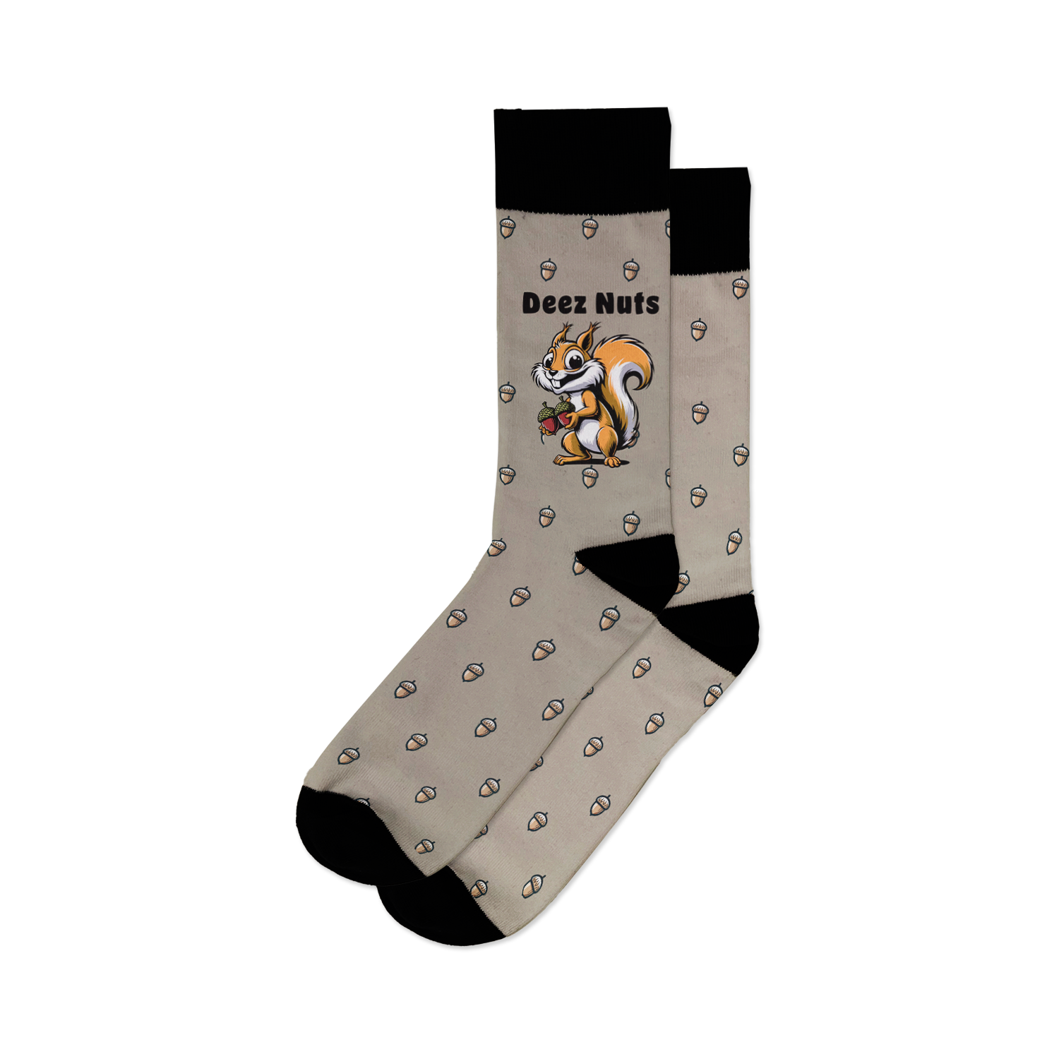 Deez Nuts: The Squirreliest Socks Ever Show off your nuttiness with these autumn-themed Deez Nuts squirrel socks! They're the perfect way to add a touch of fun and personality to your wardrobe. Made with a blend of cozy and soft materials, they come in a variety of sizes to fit your feet just right. Plus, they have a non-slip grip, so you can be sure they'll stay in place all day long. Whether you're hitting the trails or just hanging out at home, these socks are sure to bring a smile to your face.