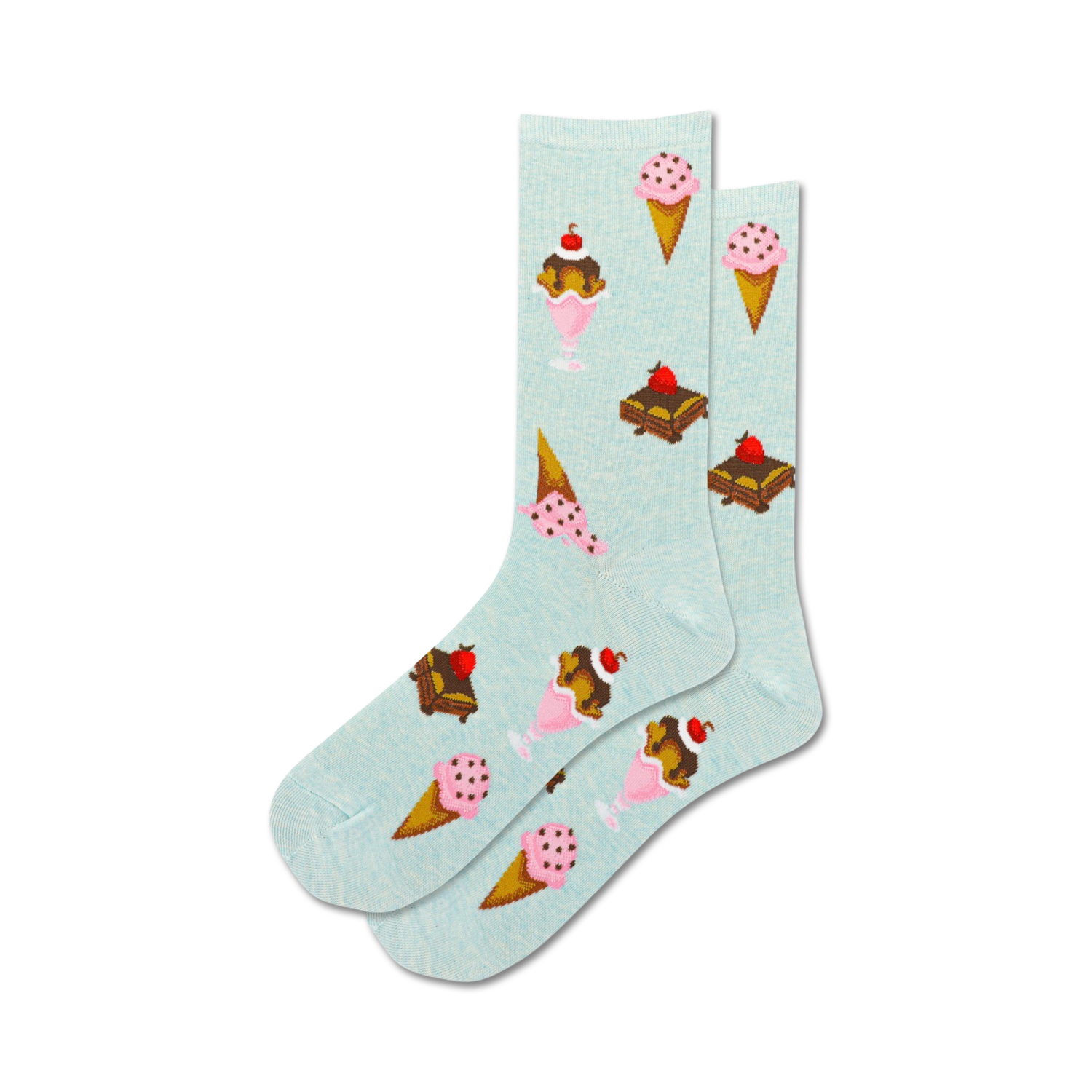 Have a sweet tooth, but don't want the calories? Treat your feet to a delectable display of decadent desserts with these "Desserts" sock selection. From scrumptious sundaes and luscious layer cakes to tempting ice cream cones and fudgy brownies, these socks have it all! Wear them to your next party and watch as everyone "kneads" to know where you got them!