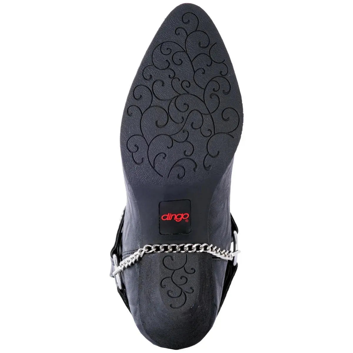 The Fiona boot by Dingo is a stylish and versatile footwear option that boasts a unique blend of functionality and fashion. The boots are crafted with manmade leather, which offers the durability and strength of genuine leather without the high cost. The material also provides a sleek and polished appearance that is perfect for any occasion. One of the standout features of the Fiona boot is its comfortable slouched shaft, which offers a relaxed and laid-back look. The shaft is designed to conform to the natural contours of the leg, providing a comfortable fit that is ideal for all-day wear. Additionally, the boots are dressed up with a Concho harness that adds a touch of Western flair to the overall design. The Fiona boot is also adorned with just enough silver accents to make them stand out in the crowd. The silver accents are subtle yet eye-catching, and they add a touch of elegance and sophistication to the overall design. This feature makes the boots perfect for both casual and formal occasions.