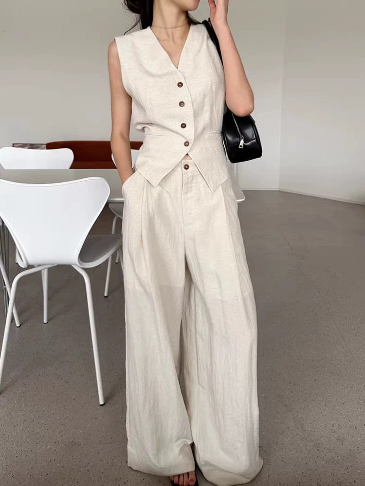 Elevate your wardrobe with our luxurious Drawstring Vest + Casual Wide-Leg Pants Two-Piece Set. This versatile ensemble features a chic drawstring vest and relaxed wide-leg pants, perfect for any occasion. Command attention with the ultimate in style and sophistication.
