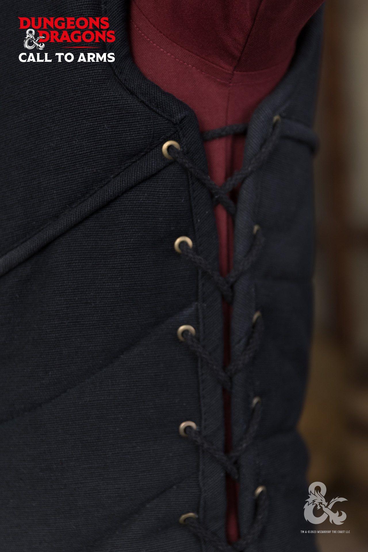 The sleeveless D&D Paladin Vest features a classic v-neck design. Its padded front and back provide the ideal blend of comfort and protection, making it the perfect choice for those who stand as the vanguards of righteousness. Lacing on both sides allow for a customizable fit, ensuring your readiness for any quest or battle that comes your way. With the Paladin Vest, you'll embody the very essence of honor and courage.
