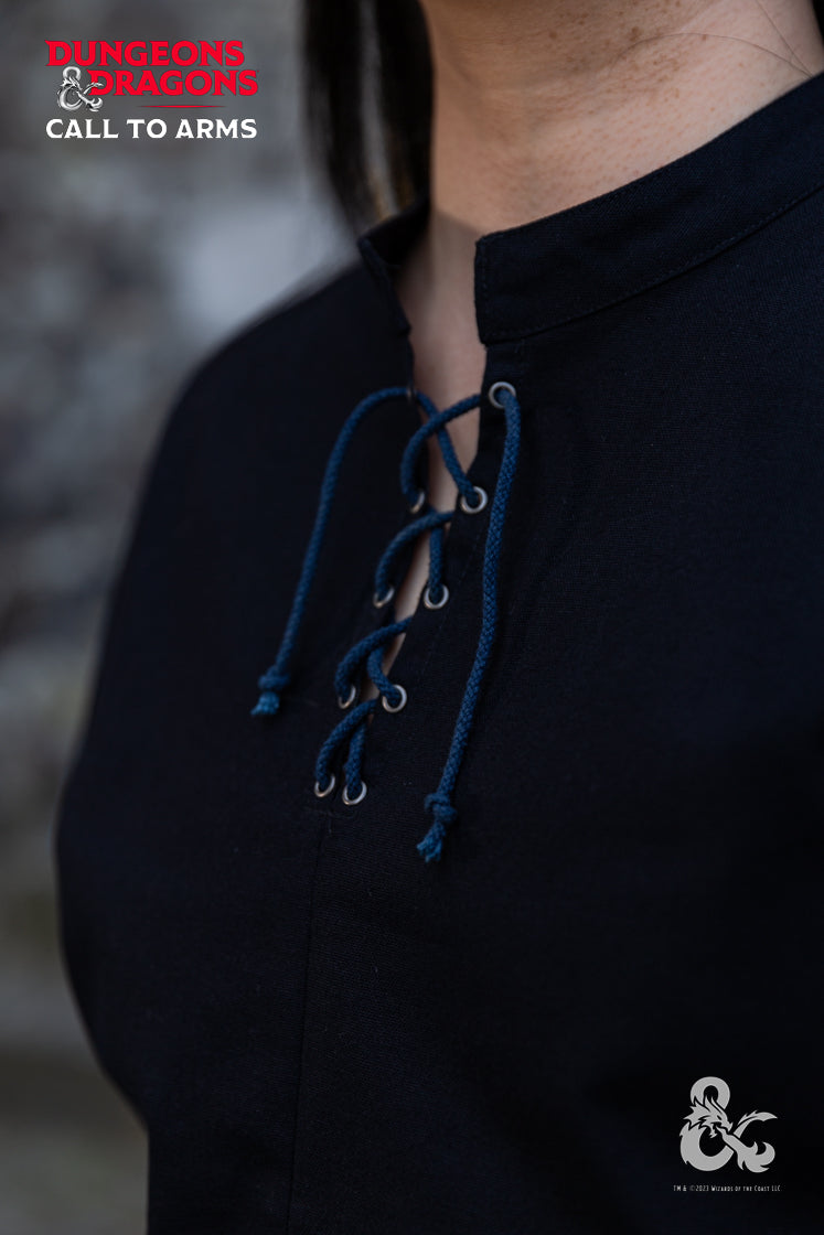 D&D's Rogue Shirt is a versatile piece that can be dressed up or down to suit the needs of any bandit or assassin. The integrated turn over collar and short sleeves give it a polished look, while the contrast color facing at the sleeve hem and side adds a touch of flair. Made of breathable, lightweight fabric, the Rogue Shirt is perfect for hot summer days or layering in cooler weather.